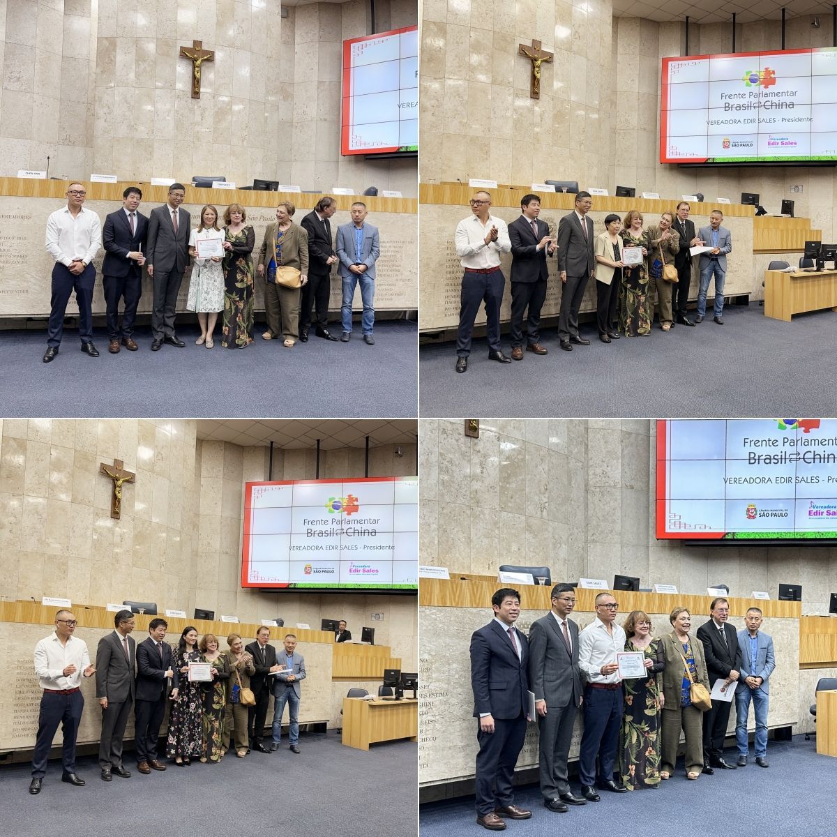 余鹏还表示,面对近期南里奥格朗德州洪涝灾害,中国和巴西坚定站在一起。总领馆第一时间向受灾民众致以慰问,并多次呼吁领区各界向灾区伸出援手。领区中资企业及侨社迅速行动,短时间内筹集到825万多雷亚尔的捐款用于购买救援物资,用实际行动践行了中巴命运共同体。他期待与巴中议员阵线的成员一道努力,共同维护中巴关系的健康稳定发展,推动中巴关系携手迈向下一个“黄金50年”!