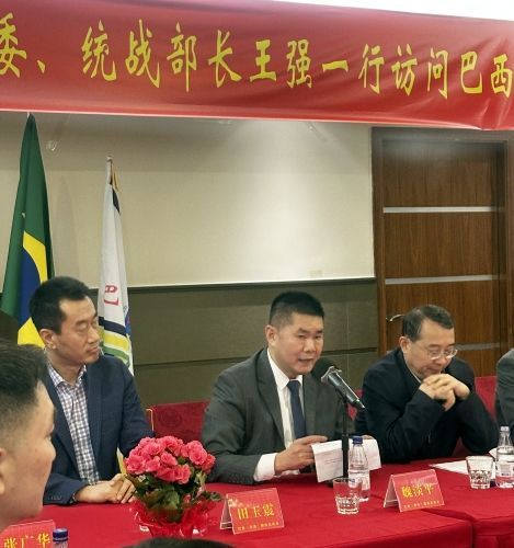 田玉震在致辞时代表驻圣保罗总领馆热烈欢迎王强会长率团访问圣保罗,开展慰侨和经贸交流与城市推介活动,预祝代表团访问取得圆满成功。田玉震表示深圳是中国改革开放的先行者,同时也是科技创新的典范。长期以来,深圳市一直在中巴关系中占据重要的特殊位置,近年来与巴西在经贸、人文等领域的交往与合作日益密切。代表团此访必将有助于进一步凝聚侨心侨力侨智,助力深圳市高质量发展。