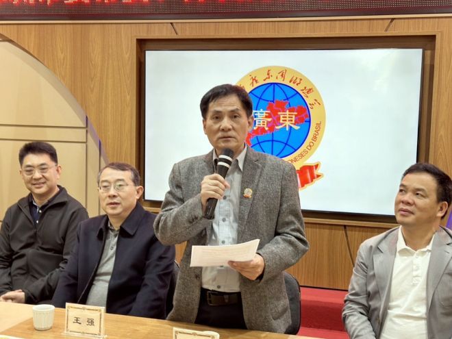 王强会长发表了热情洋溢的讲话,向在巴西的华侨华人特别是广东侨胞致以亲切的问候和慰问。他强调,华人华侨是祖国在海外的宝贵资源,为中国的改革开放提供了强有力的支持。他赞扬了深圳从一个渔村到国际大都市的快速发展,这是社会主义制度下集中力量办大事的优势的体现。作为粤港澳大湾区的重要城市,深圳依然在中国改革开放中发挥着领头羊作用。
