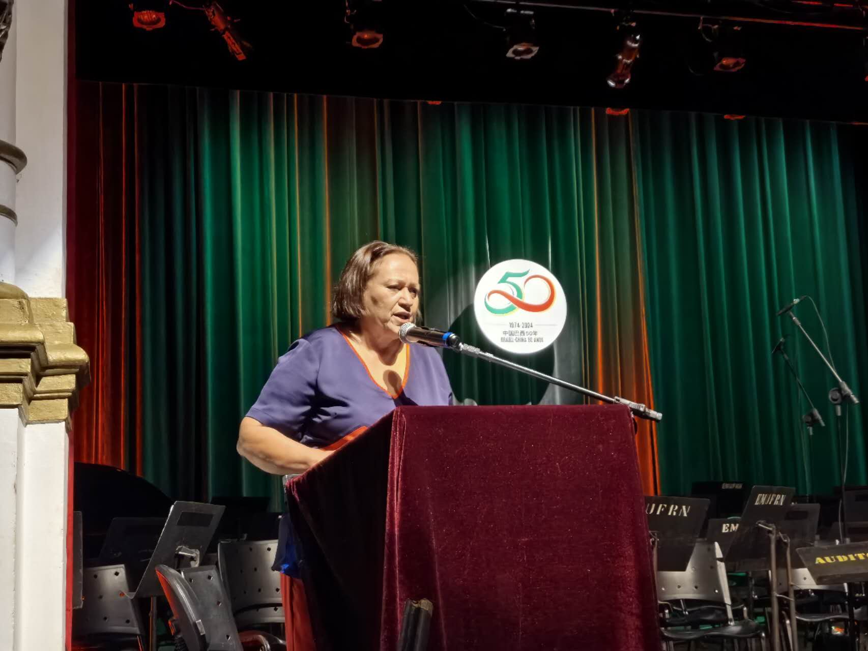 兰和平总领事代表总领馆,衷心感谢北大河州政府对此次活动的大力支持,感谢纳塔尔联邦大学音乐学院交响乐团为演出的辛勤付出。音乐没有国界,可以让素不相识的陌生人的灵魂产生共鸣,以文化交流互鉴增进民心。中国和巴西各自拥有厚重的历史和灿烂的文化,为迥然不同的国家和民族搭起沟通桥梁,推动各国文明共融。重视本国文明传承和创新,坚持各国文明平等、互鉴、对话、包容。今天,我们相聚在古老的阿尔贝托·马拉尼昂剧院,共同欣赏中巴人文交流、文化交融、民心相通的美好乐章。