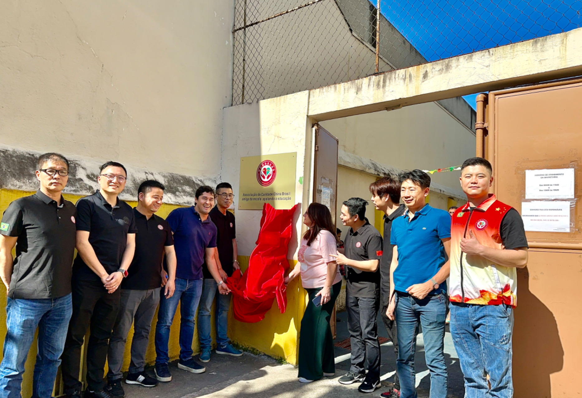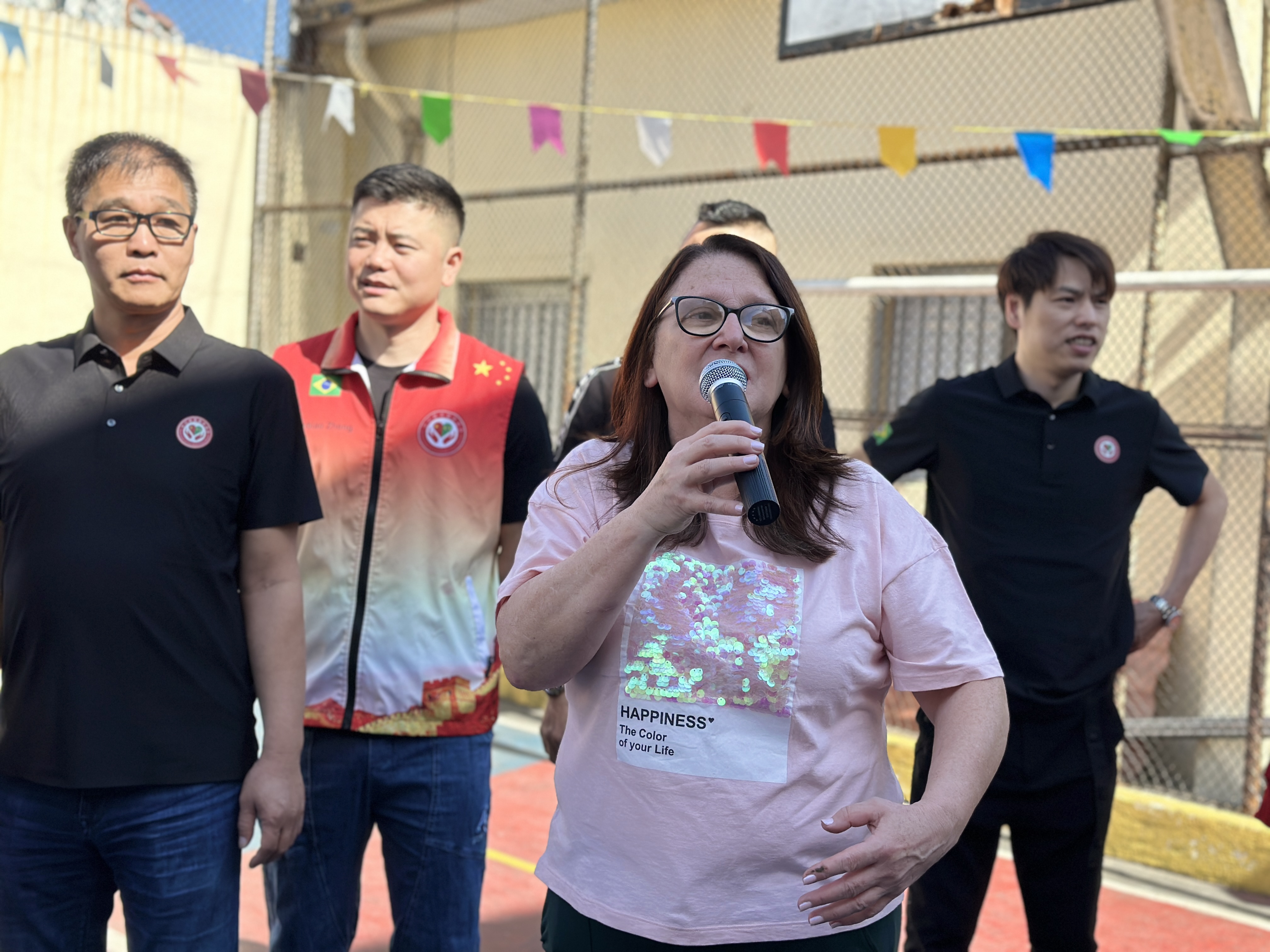 在热烈的掌声中,乔治哈托市议员、Elaine校长和孙总敏会长共同为中巴慈善基金总会帮扶学校揭牌。这块牌子不仅是圣保罗华侨华人支持巴西学校的见证,更体现了人民之间的深厚情谊。