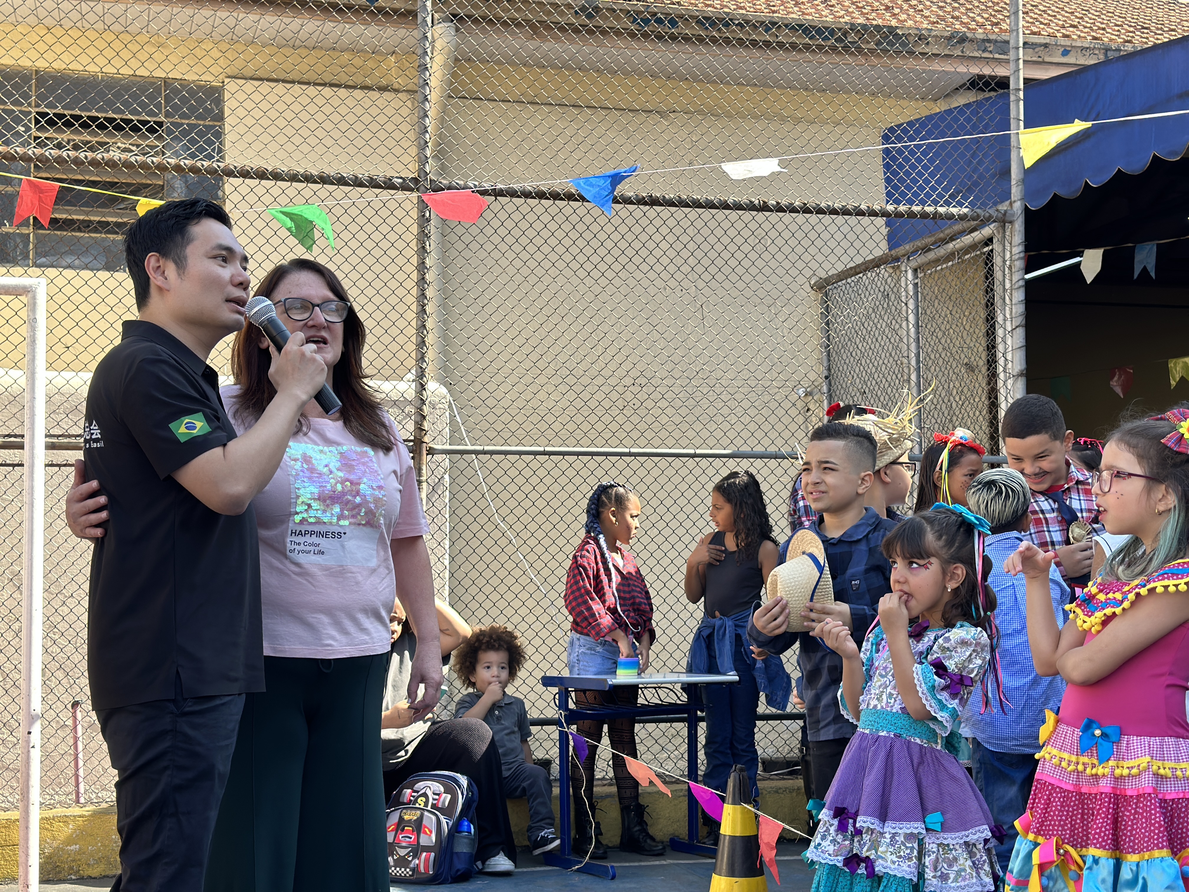 中巴慈善基金总会代表诸诗琦在讲话中表示,慈善基金总会重视教育事业,非常高兴能够资助和参加学校的FESTA JUNINA节庆活动,祝老师和孩子们节日快乐。