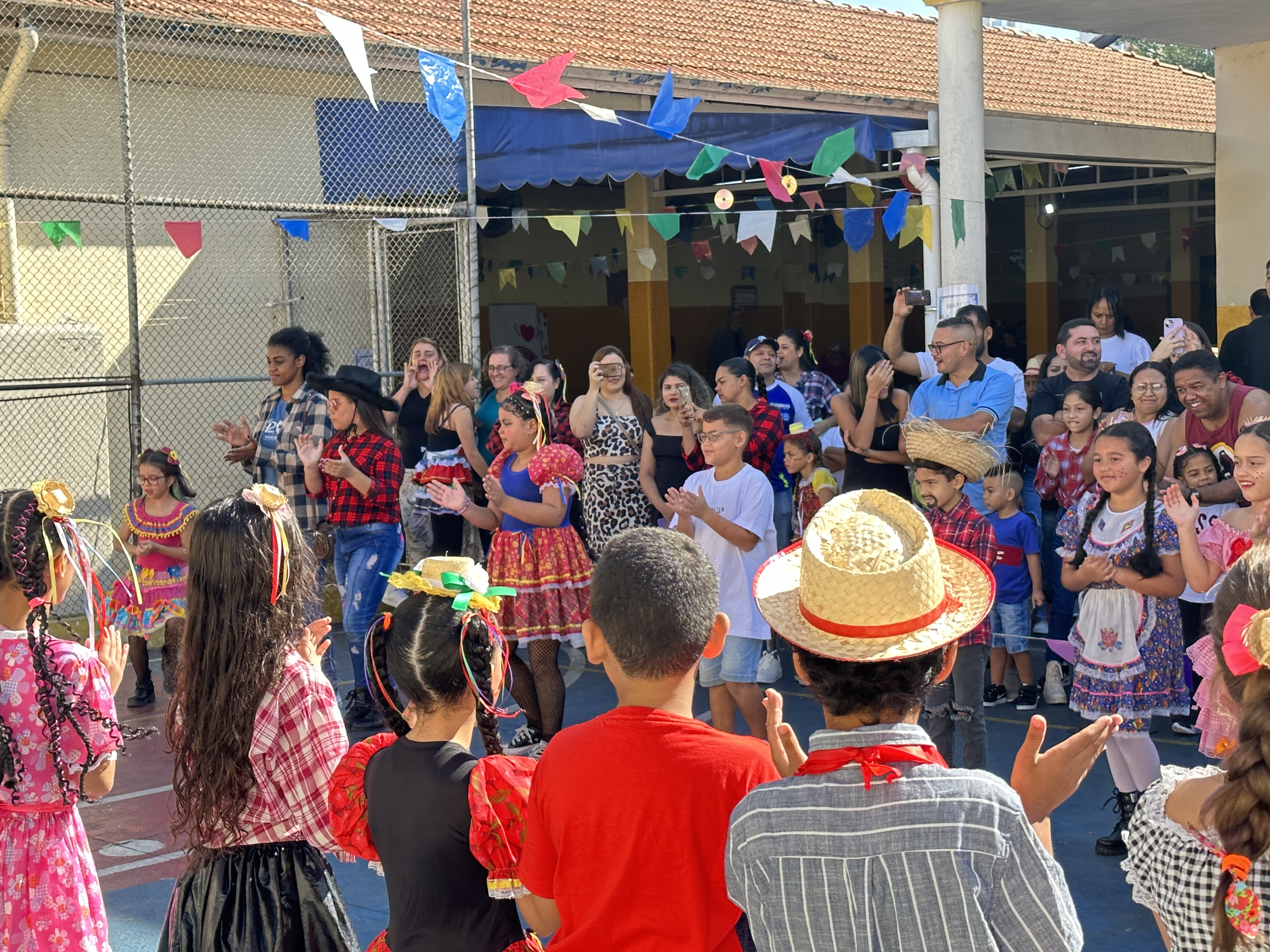 几位成员还参加了学校的“六月节”庆祝。伴随着欢快的音乐,侨胞们和师生一起跳起舞蹈,品尝巴西特色的美食,共同欢度佳节。