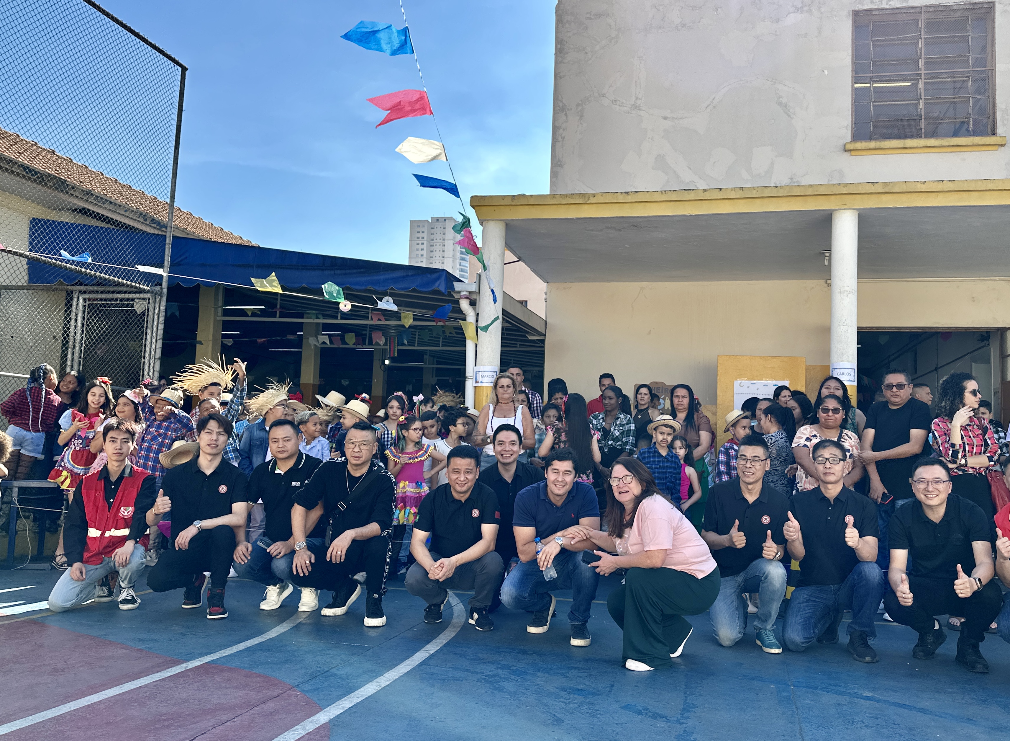 中巴慈善基金总会非常关注巴西教育事业。此次,为解决约瑟埃斯科巴教授州立学校的困难,基金总会捐款6千雷亚尔,用于支持学校“六月节”庆祝活动。圣保罗市议员乔治哈托、中巴慈善基金总会会长孙总敏、永久荣誉会长章晓红、陈永辉、执行会长诸诗琦、秘书长郑文彪、理监事成员姜伟东、王力平、季奇德、潘林华、翁雄杰、阮海东、Valdemar Hui、Roberto Sekya与学校师生一同出席了活动。