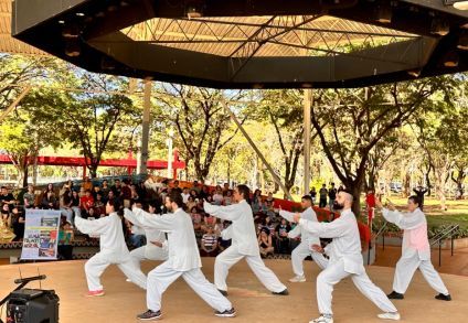 第二部分是学生文艺表演,学生们展示了太极拳、太极扇,舞彩带龙,演唱了中文歌曲《小幸运》《两只老虎》,乐器合奏《月亮代表我的心》,油纸伞舞蹈《送别》等,每一个节目都赢得了观众们的热烈掌声。这些节目也是本学期课程的成果展示,学生们不仅学习中文,也学习中国音乐武术和传统文化,在语言和文化的双重学习中更增进了对中国的了解和热爱。
