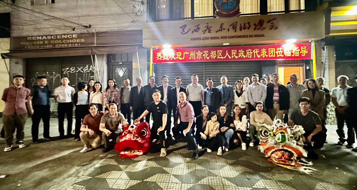 当天下午,当花都区代表团抵达巴西广东同乡总会会馆时。会馆门前早已聚集了众多侨胞,醒狮队带来了精彩的舞狮表演,为活动增添了喜庆气氛。