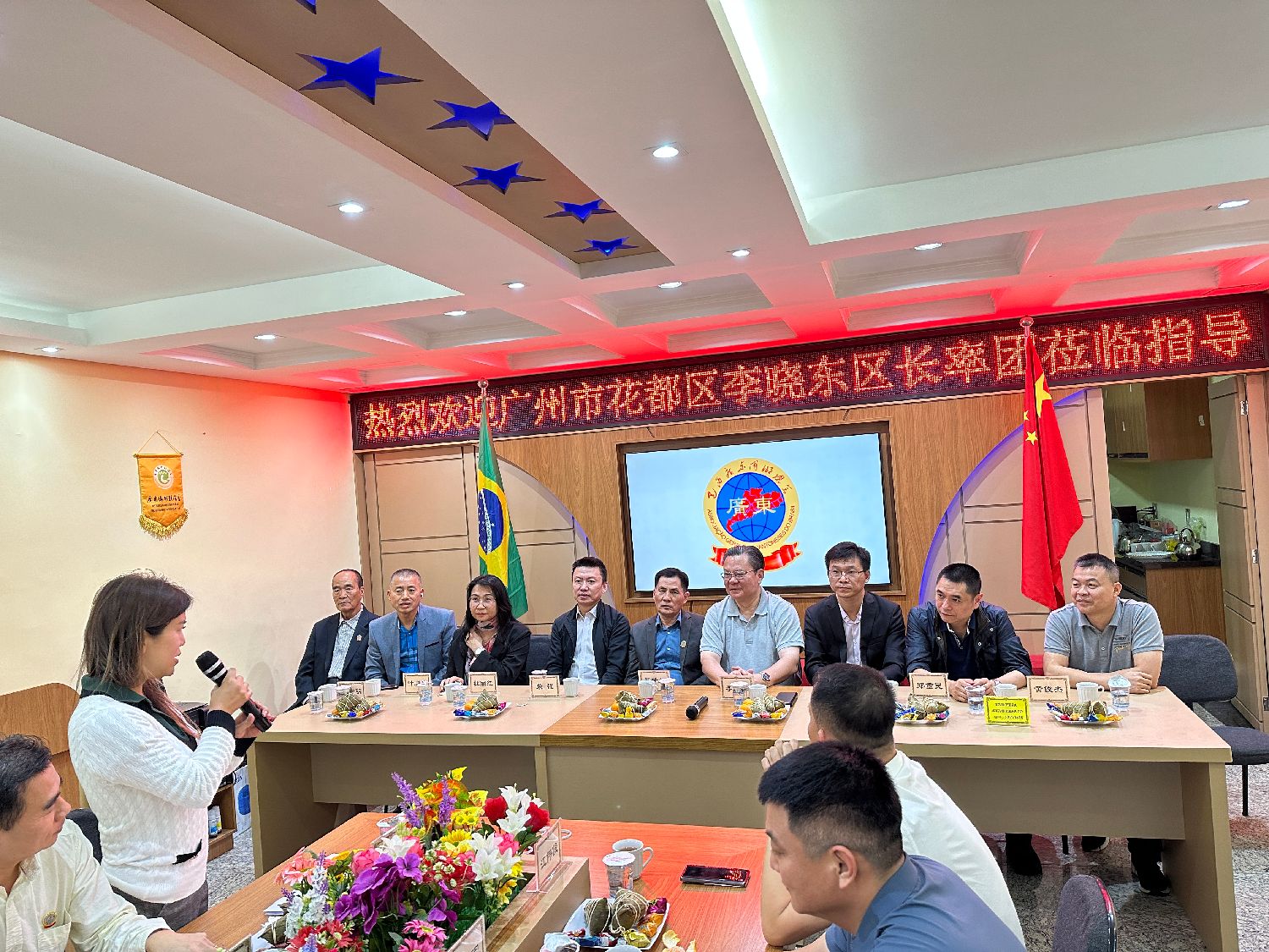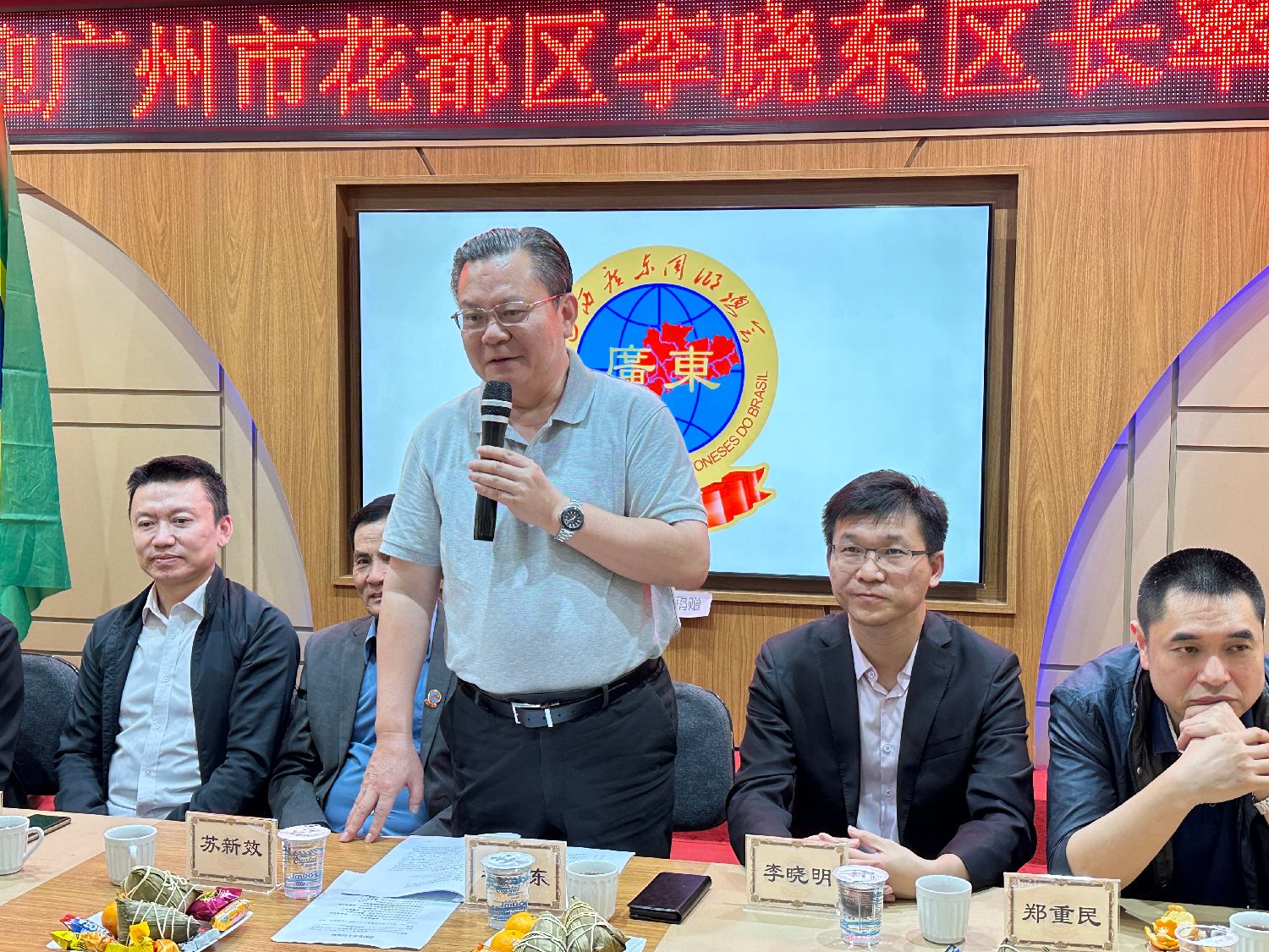 【南美侨报记者庄沂圣保罗报道】6月11日,广州市花都区区长李晓东率领代表团访问巴西圣保罗,巴西广东同乡总会办座谈会欢迎代表团一行,驻圣保罗总领馆领侨处主任荣强,侨务领事李晓明,巴西华人协会会长叶周永、巴西广东同乡总会会长苏新效、老会长苏均明、监事长陈步前及广东会主要理监事成员出席了此次活动。