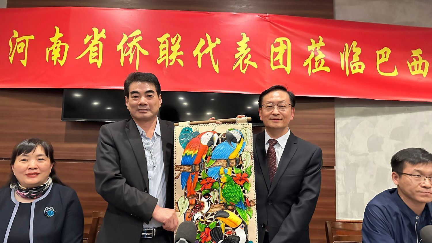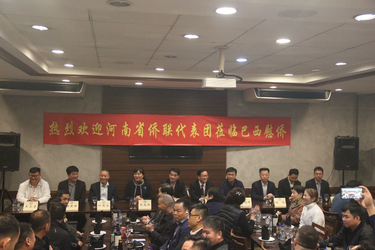 【南美侨报记者庄沂圣保罗报道】6月30日,巴西河南同乡总会在小银牛烤肉店举办座谈会,热烈欢迎由河南省侨联主席杨海强率领的代表团到访。中国驻圣保罗总领馆领侨处侨务领事李晓明、副领事葛文祥、巴西华人协会会长叶周永、巴西河南同乡总会会长石冠军、监事长王永宏、圣保罗侨社代表、河南同乡会理监事成员参加座谈。活动由河南同乡会秘书长罗淑君主持。