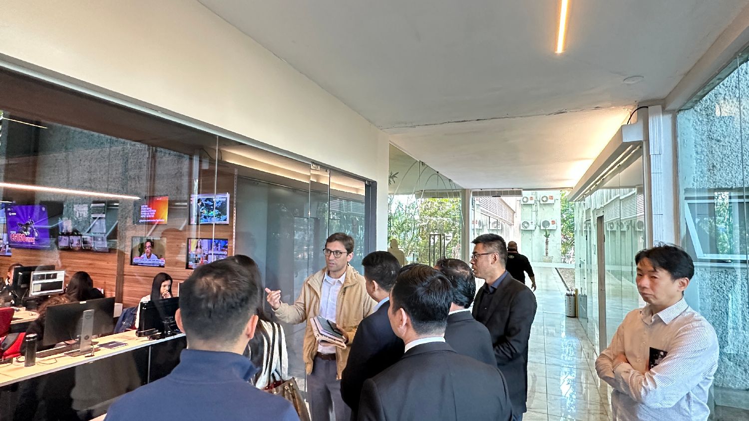 在Rodolfo总监的引导下,侨社代表们参观了BAND TV的演播室、新闻直播间、广播节目直播间等,了解了BAND TV的硬件设备和工作环境,倾听电视节目的运作模式和制作过程介绍。