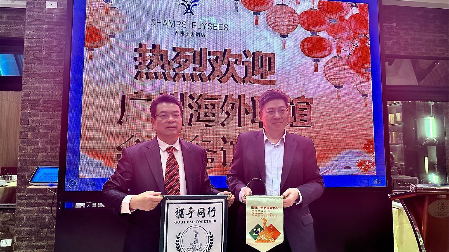 在致辞中,宋远雄代表广州企业家协会对代表团的到访表示热烈欢迎,并对代表团带来家乡政府的慰问表示衷心感谢。他表示,巴西广州企业家协会2004年成立,走过了20年的历程。协会成员坚定支持祖国统一大业,积极参与促进巴西与广州的友好交往,团结带领穗籍侨胞融入当地社会,为当地的社会发展贡献了力量。宋远雄还表示,如今,协会吸引了更多年轻人的加入,他们有能力有活力,协会发展未来可期。
