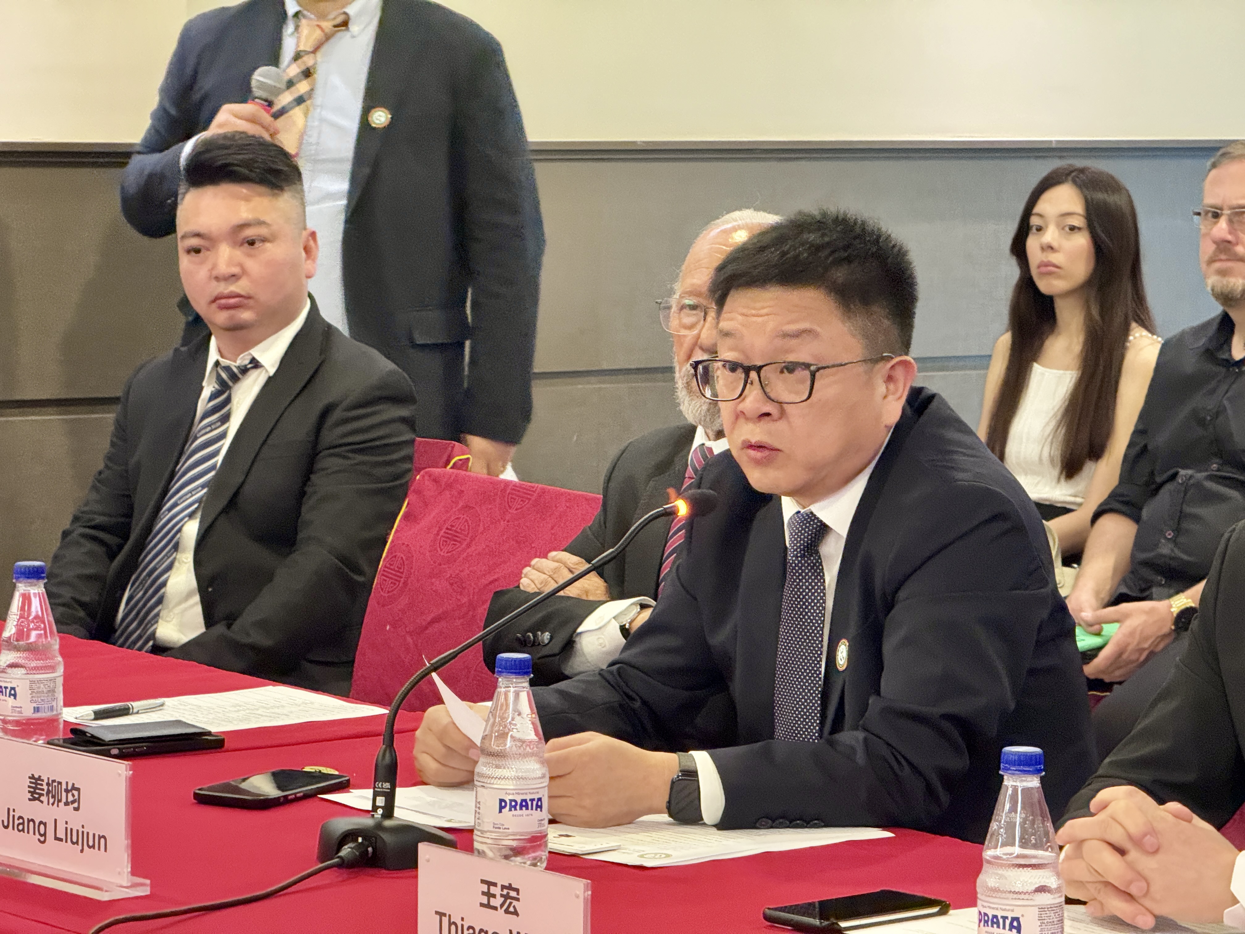 王宏在致辞中介绍说,四川商会拥有136名企业家,业务涵盖农业、科技、技术等多个领域。此次交流会旨在为中巴两国商人提供宝贵的交流机会,进一步推动双方的务实合作。他表示,四川省经济总量位居全国第五,2024年将迎来中巴建交五十周年,这是一个具有重大意义的历史节点。他热情邀请大家前往四川,深入了解其经济发展和投资环境,并表示将带领更多四川企业前来巴西进行投资交流。他希望,今天的会议能够为与会者带来启发和收获,商会未来将继续保持紧密联系,推动更深层次的合作交流。