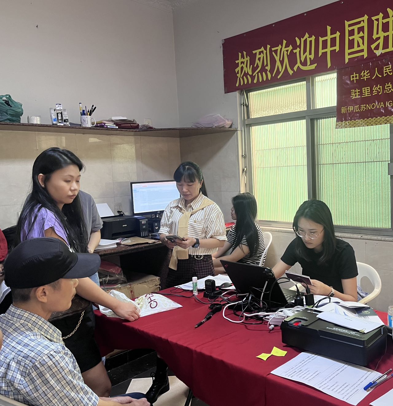 【南美侨报网讯】2024年8月18日上午,为便利偏远侨胞申办领事证件业务,驻里的总领馆领侨处齐冀处长、王祉祎、曾粲领事一行赴里约州新伊瓜苏市(Nova Iguaçu)广东同乡会现场办公。在里约广东同乡会陈锡钦会长带领下,二十多理监事协助支持,共受理领事证件60份,现场接待110多侨胞。