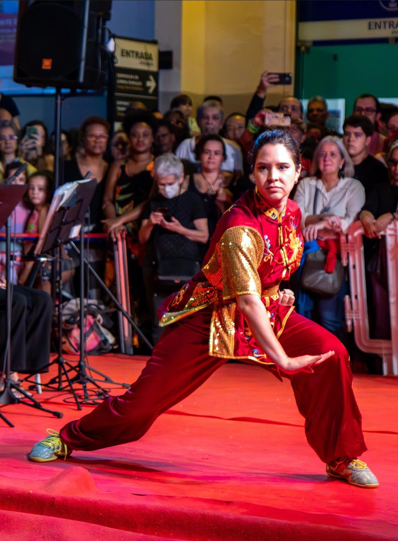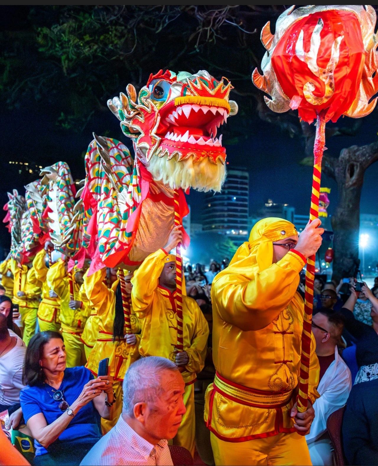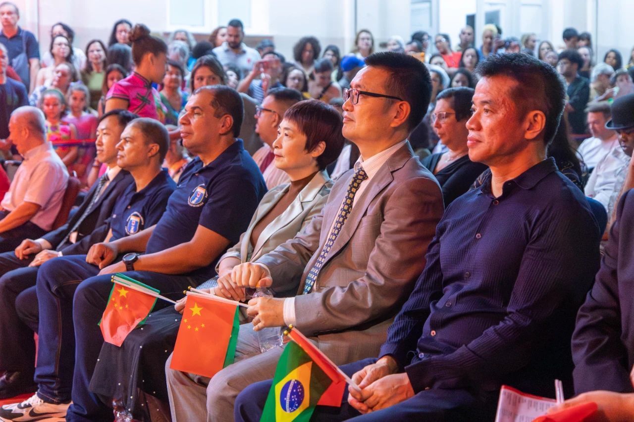 在庆祝活动现场,气氛异常热烈。在张灯结彩、充满浓厚中国特色的舞台上,首先上演的是来自里约州功夫雄鹰协会的精彩表演。他们带来了传统的舞龙舞狮表演,舞动的龙狮栩栩如生,翻腾跳跃,令人目不暇接。紧接着,武林道学院的武术表演同样让人眼前一亮。他们个个身手矫健,动作刚劲有力,展示了中国武术的独特魅力。