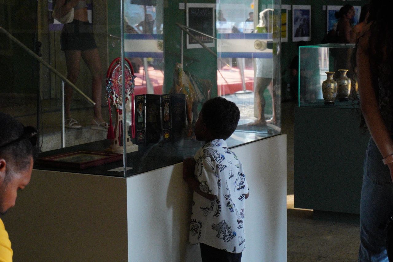 除了精彩的舞台表演外,在科帕卡巴纳要塞陆军历史博物馆大厅内还设有“中国历史”摄影展、中国传统乐器及文化物品展。与此同时,里约天主教大学孔子学院的中国茶艺表演,东方文化中心赖明诗老师的中国书法展示,也在此进行。这些展览和体验同样吸引了大批巴西民众驻足观看和体验品尝。