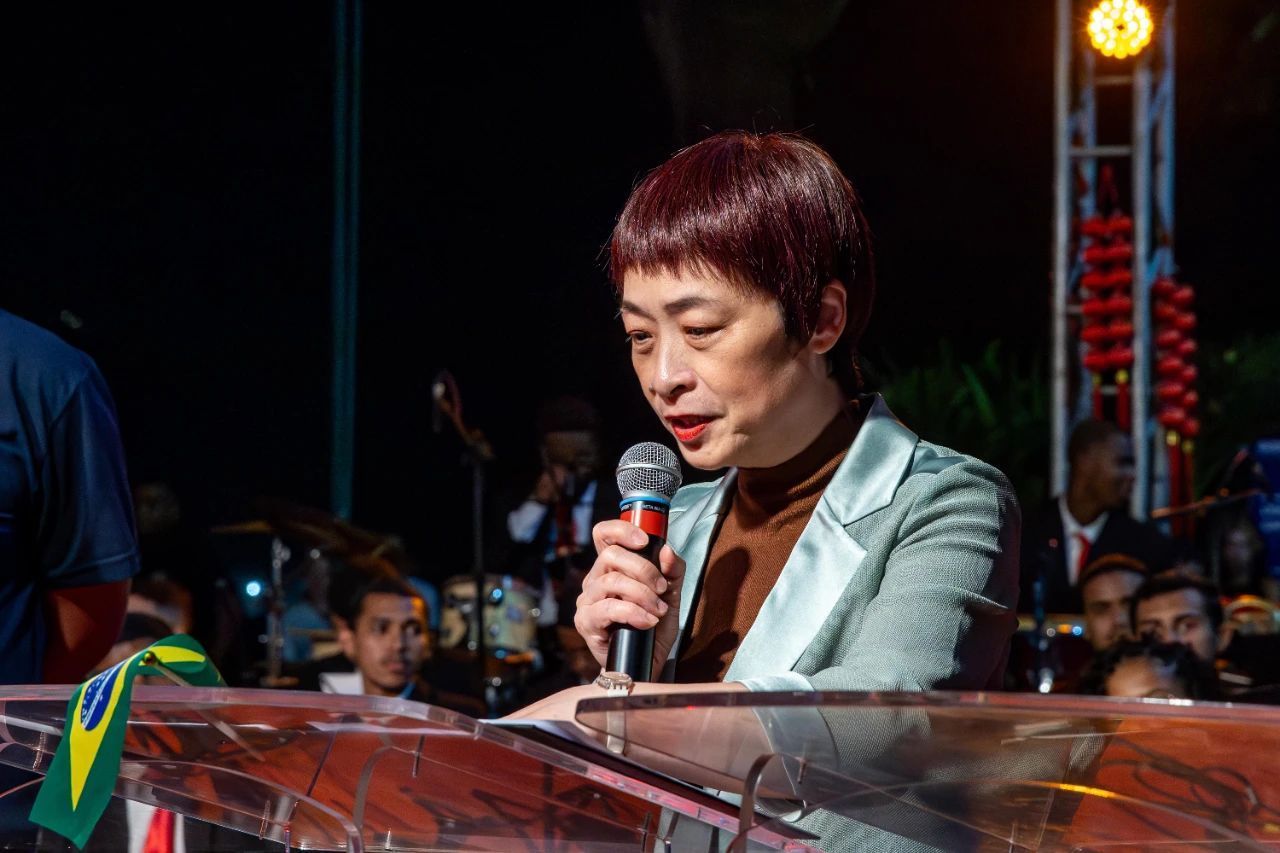 田敏总领事在致辞中祝贺两国建交50周年,强调了中巴关系在稳定发展的同时,已超越双边层面,具有全球性和战略性影响。她特别赞扬了中海油、中石油、国家电网等驻巴西中资企业在推动文化交流和促进两国民心相通方面的积极贡献。田敏总领事表示,驻里约热内卢总领馆将继续发挥桥梁和纽带作用,推动中巴两国全面战略伙伴关系的进一步发展,并期待中巴关系迎来下一个“黄金50年”。