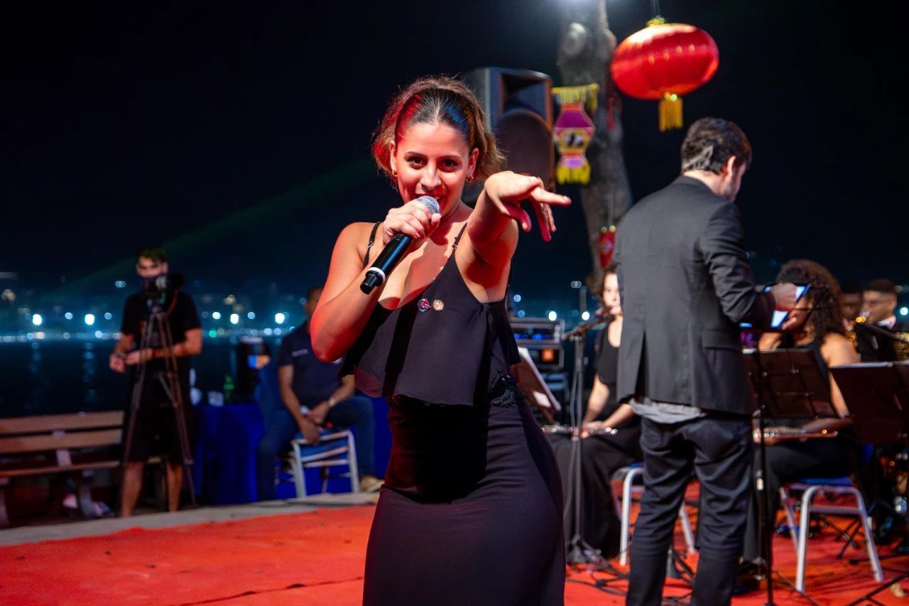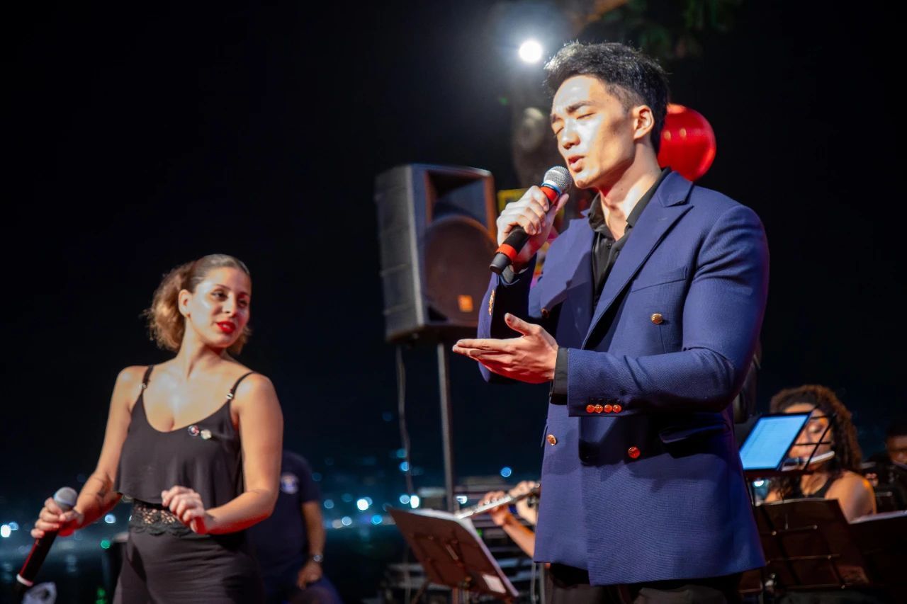 随后,科帕卡巴纳要塞乐团和沙珑乐团演绎的中国经典曲目《月亮代表我的心》《我爱你中国》《星辰大海》和巴西名曲《向我们的父辈一样》《七海的探索者》等,一次次将现场气氛推向高潮。特别是乐队女歌手Michelly和中国驻里约总领馆段云轩领事合唱的《如愿》一曲,更生动体现了中巴两国人民对于美好未来的共同期许。