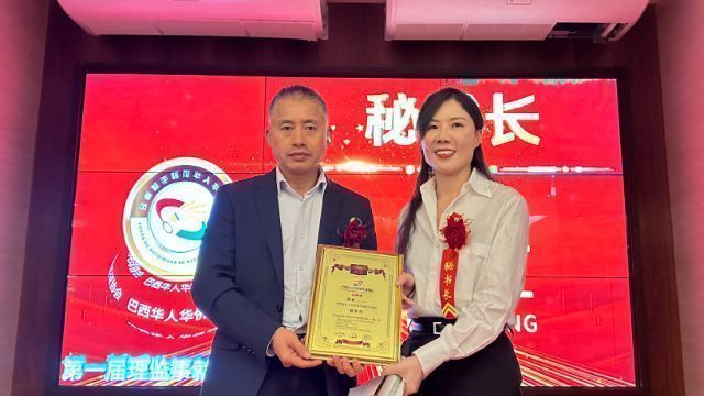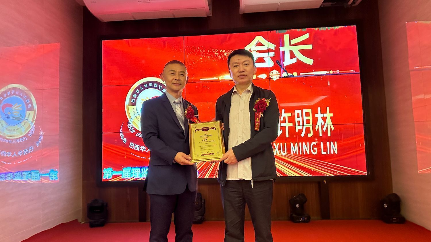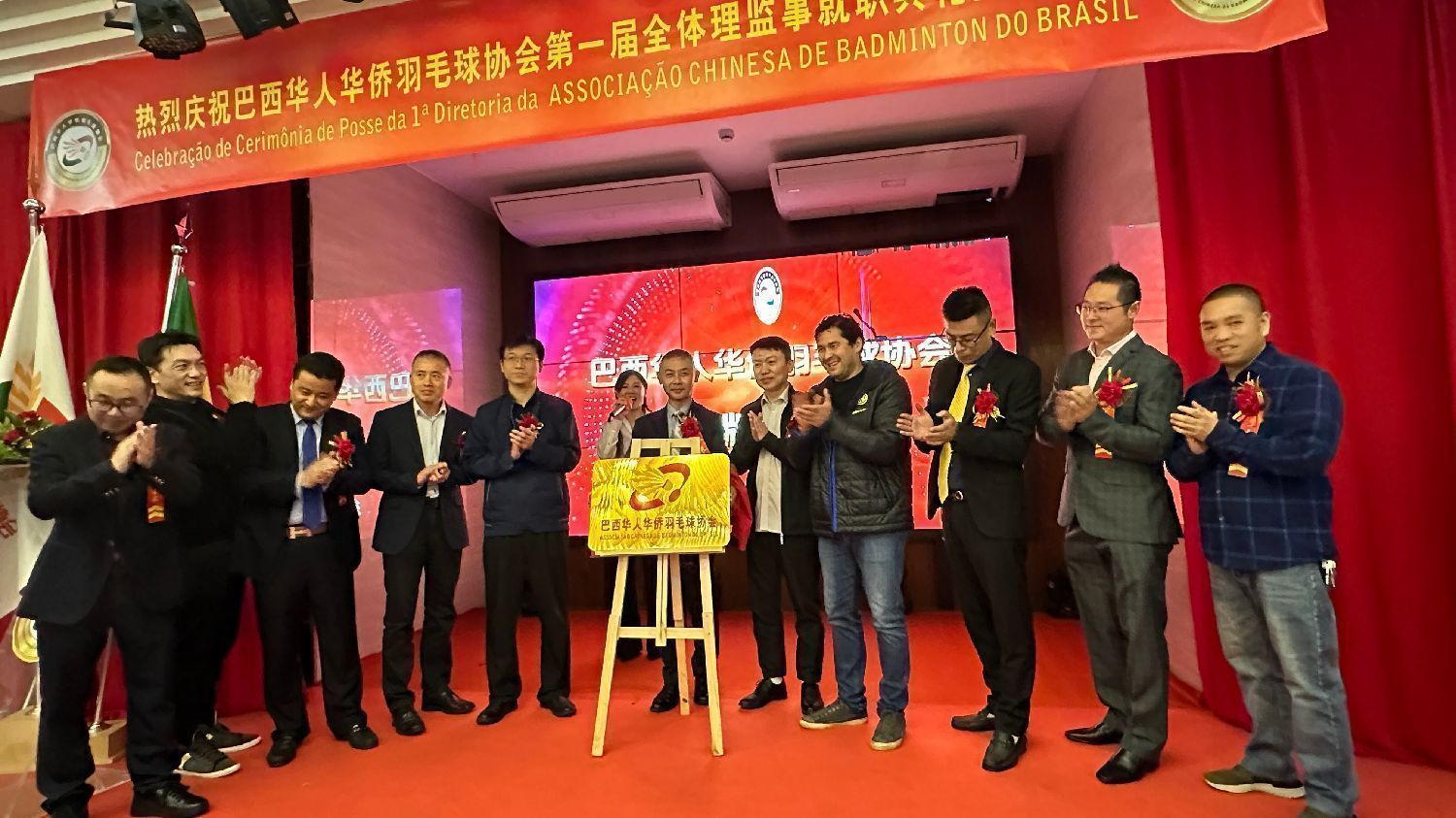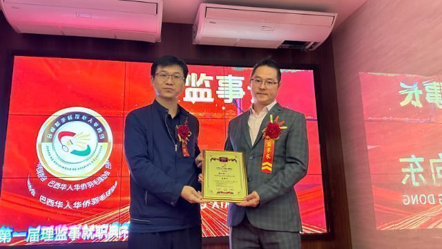 荣强、乔治哈托、李晓明、叶周永为几位负责人颁发了证书,并共同为“巴西华人华侨羽毛球协会”揭牌,许明林、傅向东为全体理监事颁发了聘书,现场气氛热烈,充满友好和欢乐,全体理监事上台合影,齐声祝愿“中巴友谊长存”。