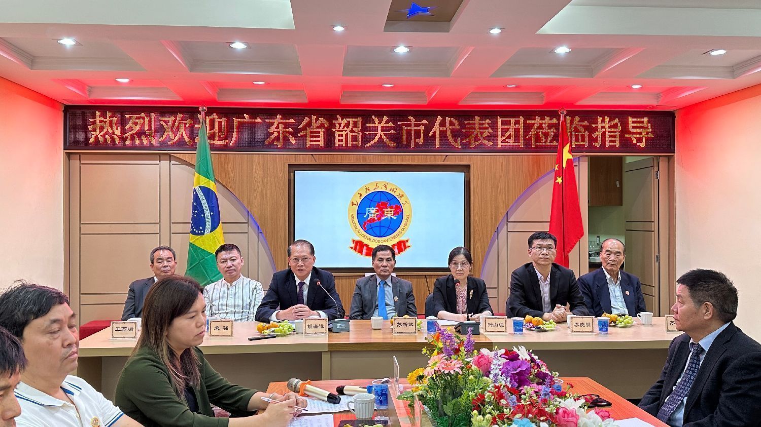 【南美侨报记者庄沂圣保罗报道】9月3日,广东韶关市政协主席胡海运及韶关市侨联主席钟山红率领广东韶关市政府代表团访问圣保罗,巴西广东同乡总会和巴中工商文化总会分别在会馆举办座谈会,热烈欢迎代表团一行。中国驻圣保罗总领馆领侨处主任荣强、侨务领事李晓明,巴西华人协会会长叶周永、监事长王万瑞,巴西广东同乡总会会长苏新效、老会长苏均明、监事长陈步前、秘书长梅玉娟,巴中工商文化总会会长陈荣添、老会长李浓忠、秘书长丘海鹏,巴西北京文化交流协会会长赵永平、两会主要理监事成员出席座谈。