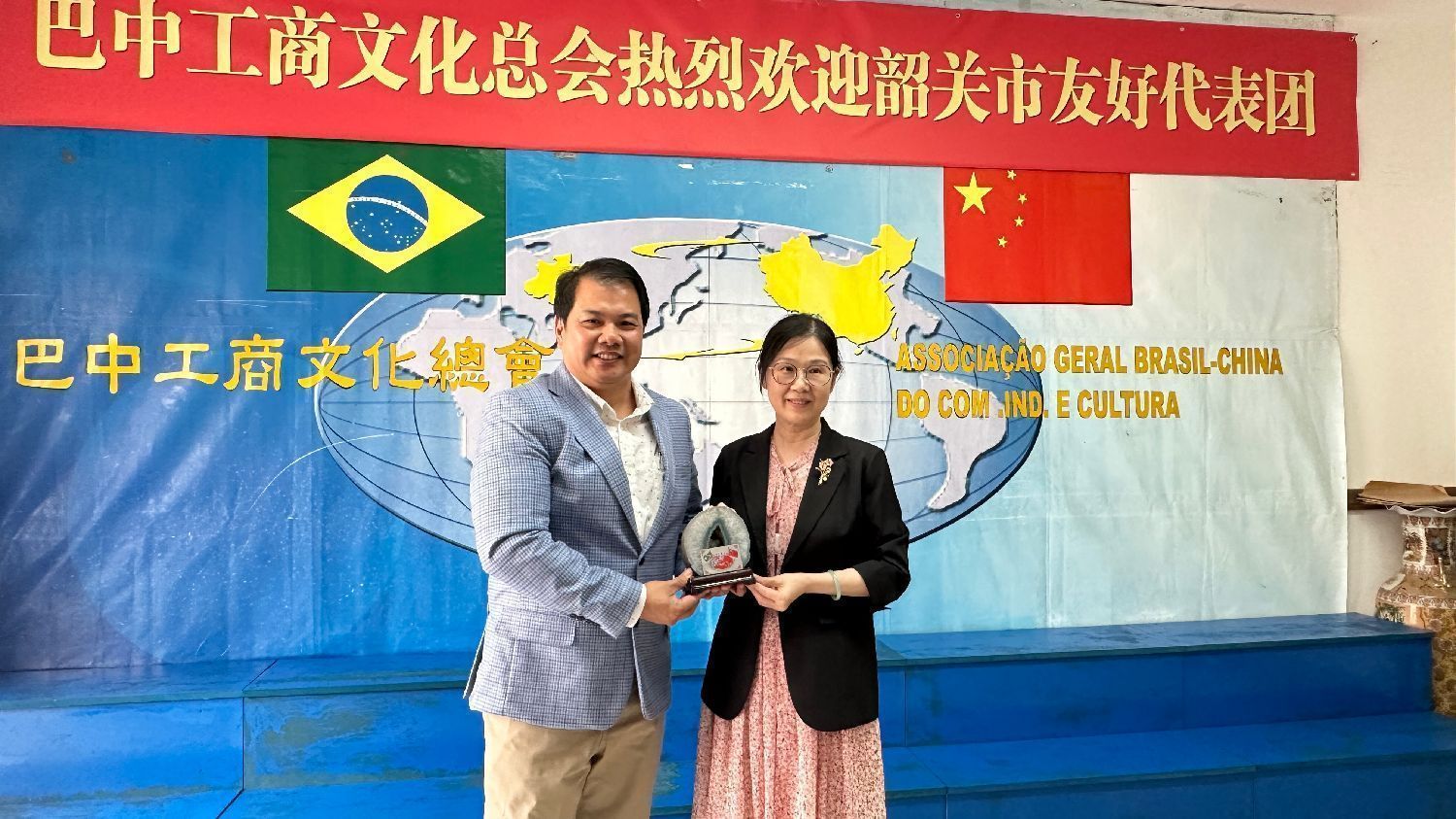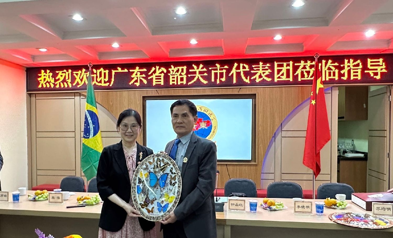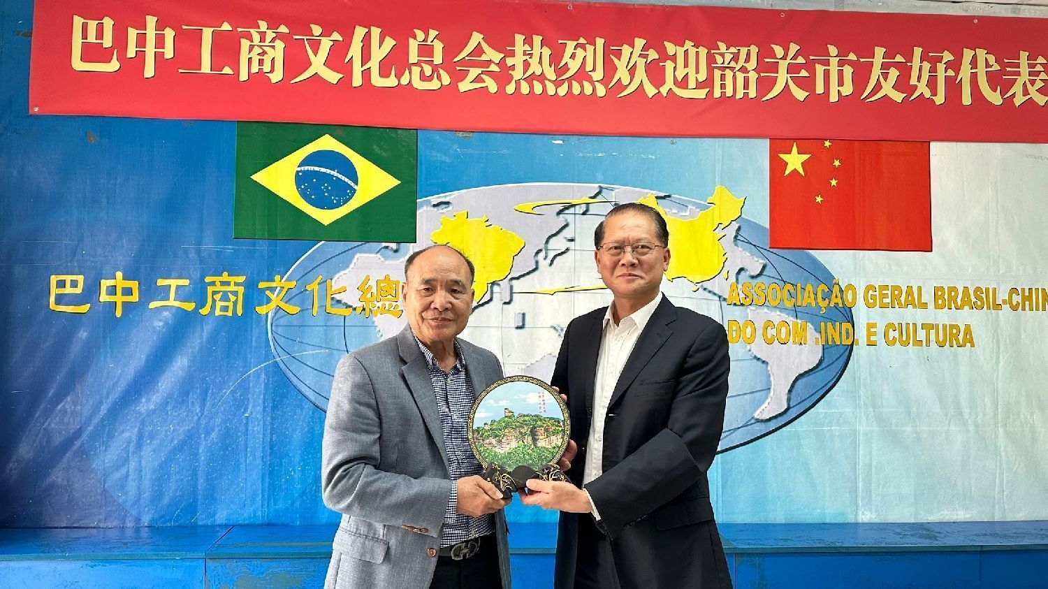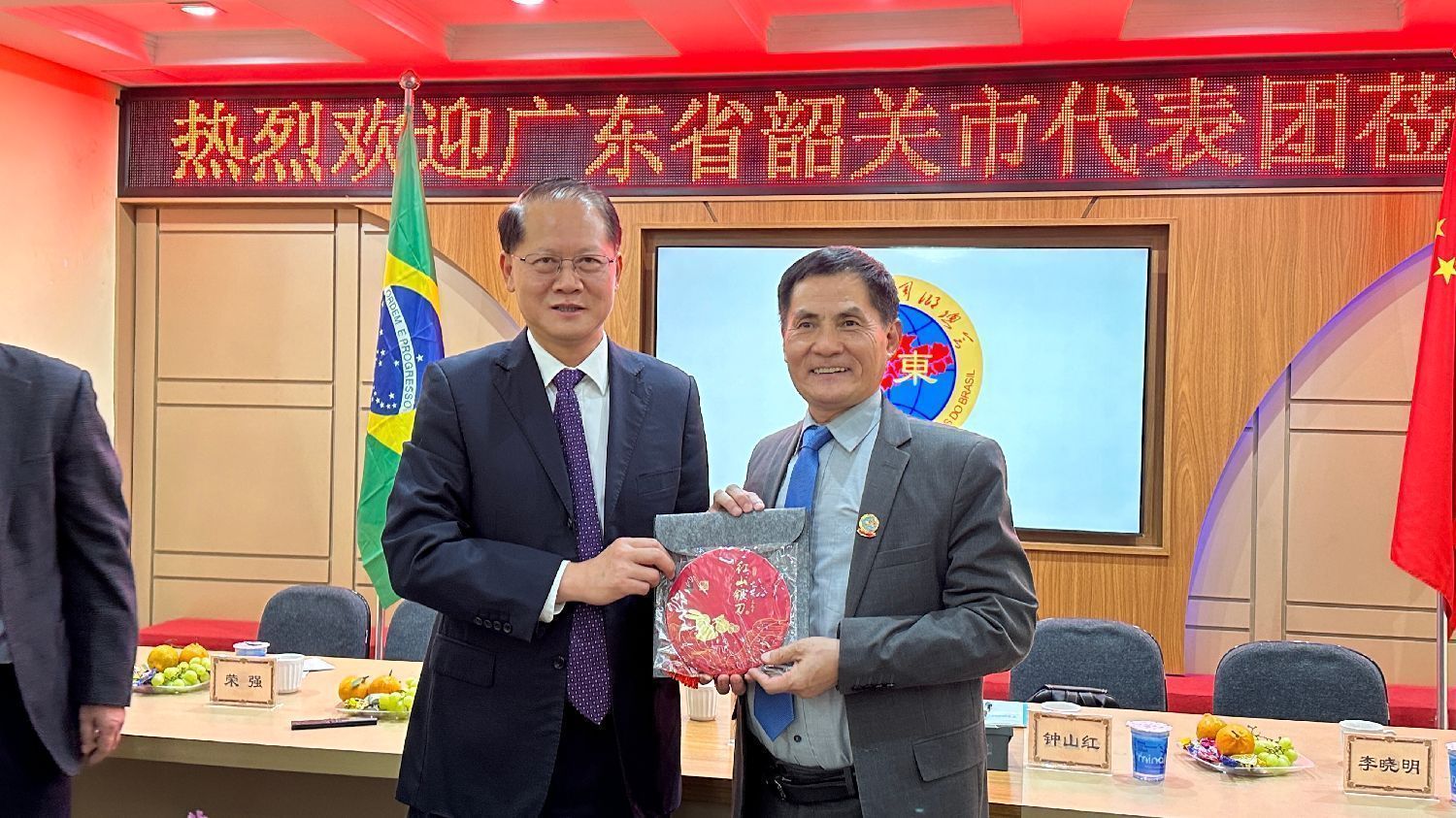 座谈会后,巴西广东同乡总会及巴中工商文化总会与代表团交换了象征友谊的礼物。