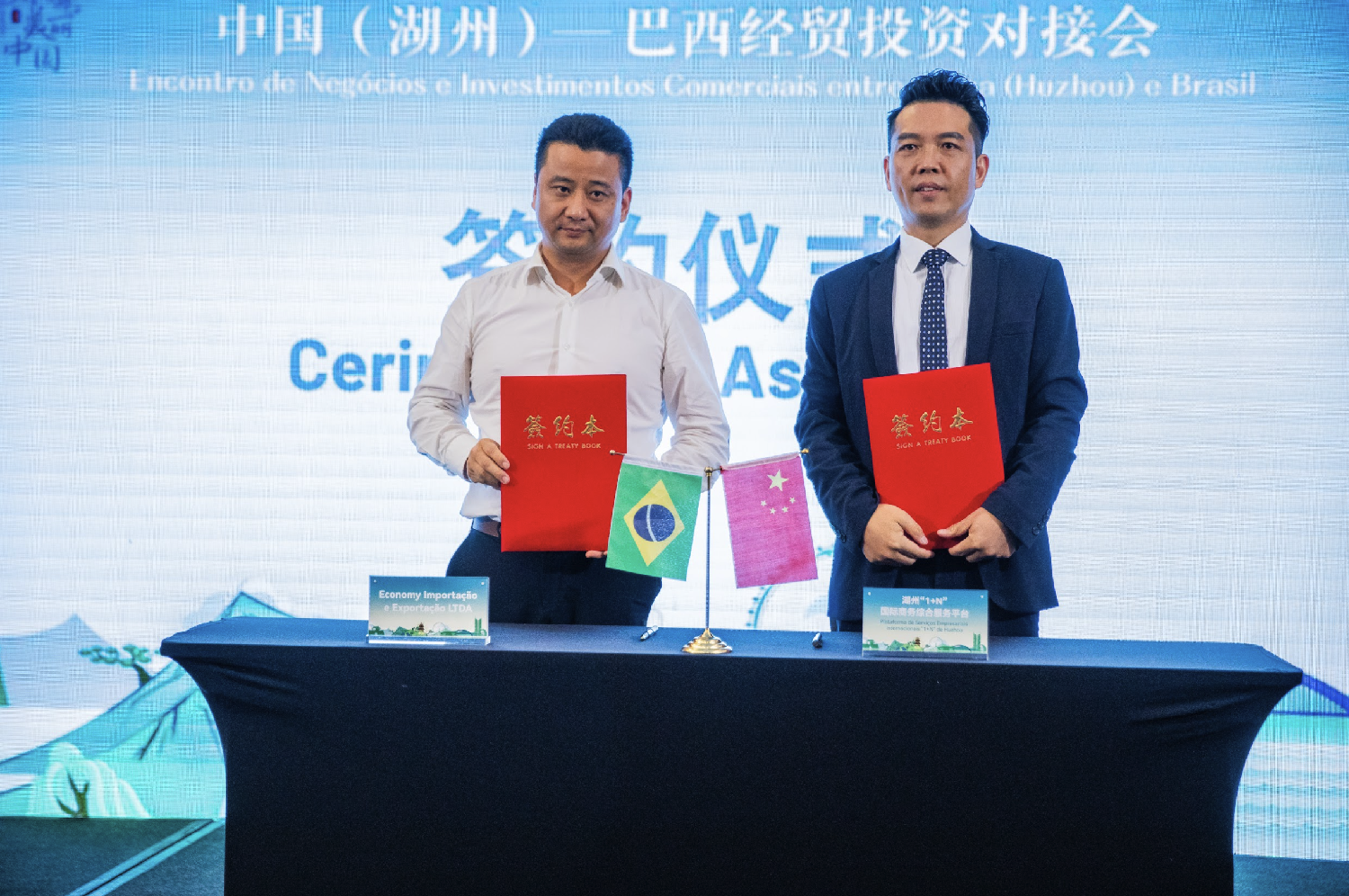 签约仪式上,多个合作协议在现场签订,标志着湖州与巴西企业之间合作关系的进一步深化。湖州银行与Nayuta Investment公司签署了战略合作协议,双方将在金融领域开展深度合作。湖州“1+N”国际商务综合服务平台与Brascol、Addmall、安骏物流等公司签署了多项合作协议,旨在通过该平台推动双边贸易的进一步发展。此外,湖州“1+N”国际商务综合服务平台与Economy Importação Exportação贸易公司也签署了战略合作协议,标志着湖州在巴西市场的国际商务综合服务将进一步扩展。