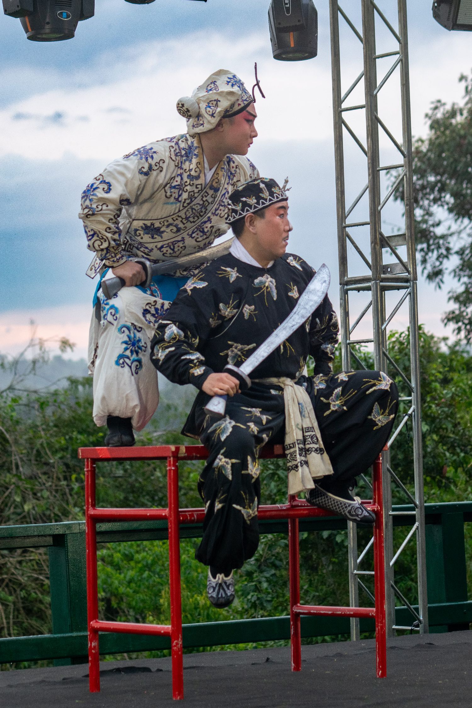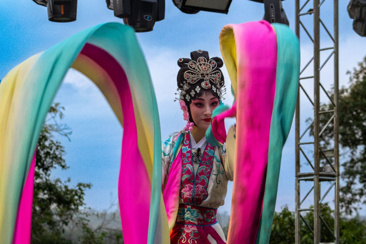 致辞结束后,婺剧团的演员们为大家带来了《九节龙》、《天女散花》、《三岔口》、《说唱脸谱》、《金猴闹春》等传统剧目,婺剧的刚柔并重与瀑布的宏伟巧妙融合,将现场的氛围推向高潮,观众们不停鼓掌,为演员们喝彩。