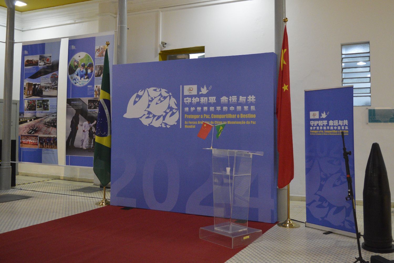 解放军国际传播代表团团长毛乃国表示,中国的发展是和平力量的增长、是稳定因素的增强。这些,都和巴西追求和谐、热爱和平的文化底蕴异曲同工。正如这次展览的主题,守护和平命运与共,是中国的也是巴西的愿景,是心声更是行动。长期以来,中国军队始终牢记履行大国担当的初心和使命,成果国际公认的世界安全稳定的贡献者、全球安全治理的推动者、人类安全共同体的建设者。