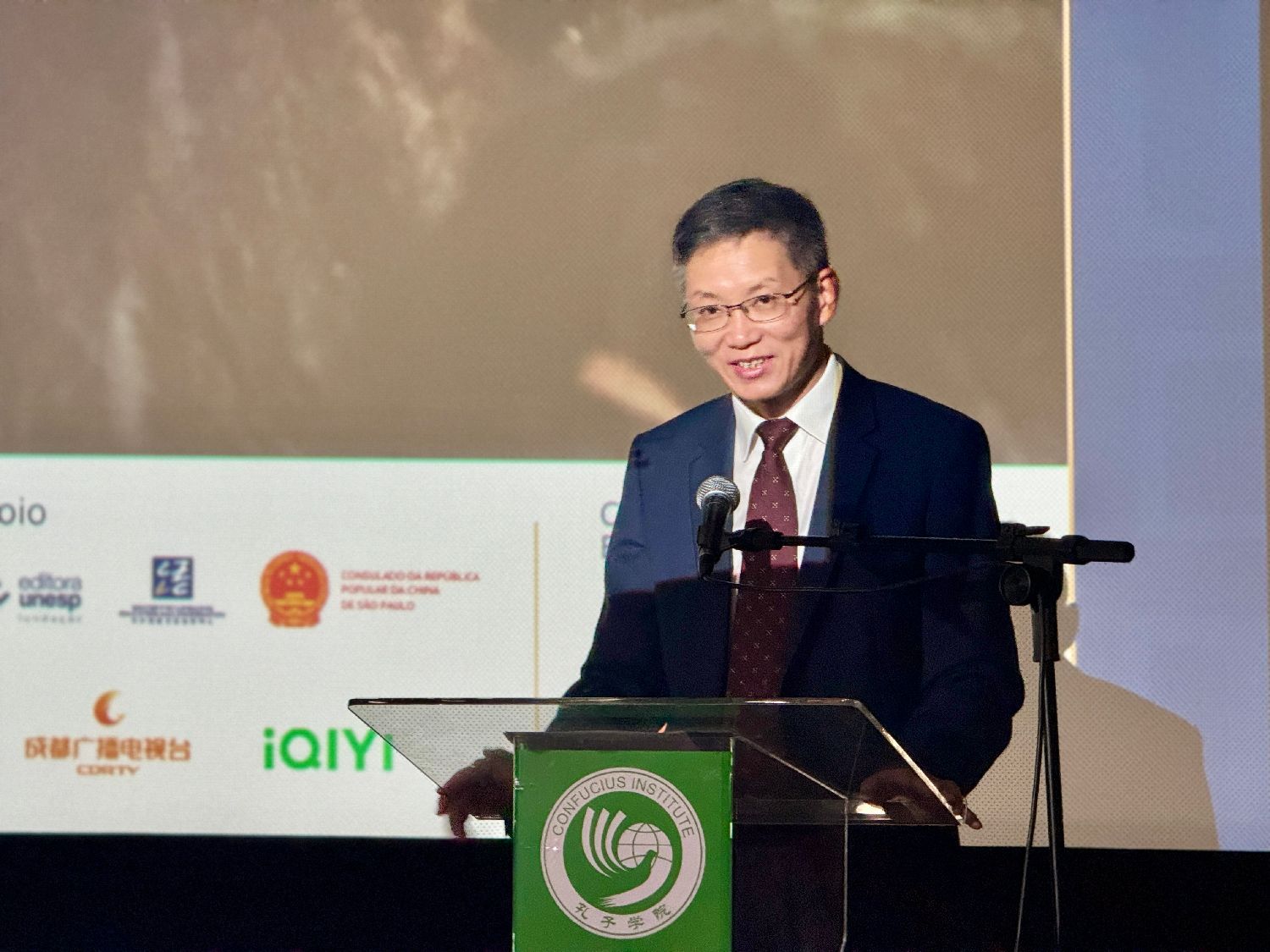 湖北大学副校长曾祥勇以视频的方式致辞。他表示,湖北大学作为圣保罗州立大学孔子学院的中方合作伙伴,长期以来致力于推动两国的文化和教育交流。湖北大学通过派遣160余名中文教师和志愿者,帮助巴西民众学习中文和了解中国文化。此外,湖北大学还为1000多名巴西学生提供了到中国学习和交流的机会。他指出,湖北大学不仅仅是孔子学院的合作伙伴,还通过设立巴西研究中心和拉丁美洲研究院,进一步推动中巴两国的学术交流和人文互鉴。近期,湖北大学与圣保罗州立大学即将共同开设中文专业,进一步深化中巴两国在教育领域的合作。他还提到:“2024年是中巴建交50周年。50年来,两国人民通过各领域的密切合作,取得了丰硕成果。我们站在新的历史起点上,期待未来更加紧密的合作,共同谱写中巴友谊与合作的新篇章。”