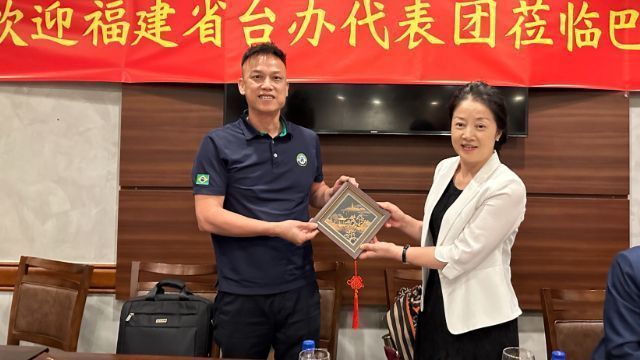 【南美侨报记者庄沂圣保罗报道】2024年10月13日,福建省台办副主任翁云萍率代表团访问巴西。巴西闽商联合会、巴西华人华侨促进中国和平统一联合会举办座谈会,欢迎代表团到访。中国驻圣保罗总领馆副总领事田玉震、副领事张方明,巴西华人协会监事长王万瑞,巴西闽商联合会监事长林本昂,巴西华人华侨促进中国和平统一联合会监事长宋玉美、执行会长陈彬,福建侨团代表及两会理监事成员出席座谈。陈彬主持活动。