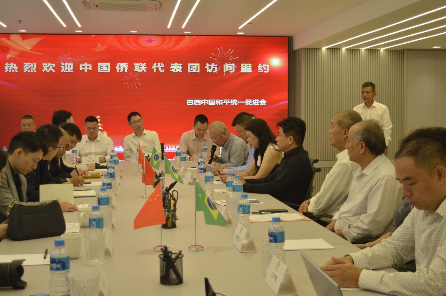 【南美侨报记者陈妤汎里约热内卢报道】10月22日,巴西中国和平统一促进会(以下简称“巴西和统会”)与中华全国归国华侨联合会座谈。巴西中国和平统一促进会会长张小春在巴西和统会会馆热烈迎接了由中华全国归国华侨联合会副主席高峰率领的中国侨联代表团一行。中国驻里约热内卢总领馆副总领事王尉育、领事曾粲、巴西里约华人联谊会会长陈秉文、巴西华人文化交流协会代主席朱毅明、巴西里约中国和平统一促进会代会长詹慧华、巴西中国浙江商会会长郑侠茂、巴西里约广东同乡会会长陈锡钦、巴西中国安徽商会会长魏贵德、巴西中国和平统一促进会永久荣誉会长尹楚平、王俊晓、第一常务副会长王申晓、台胞代表陈碧云等侨领侨胞出席了此次座谈。座谈会由巴西和统会执行会长林海平主持。