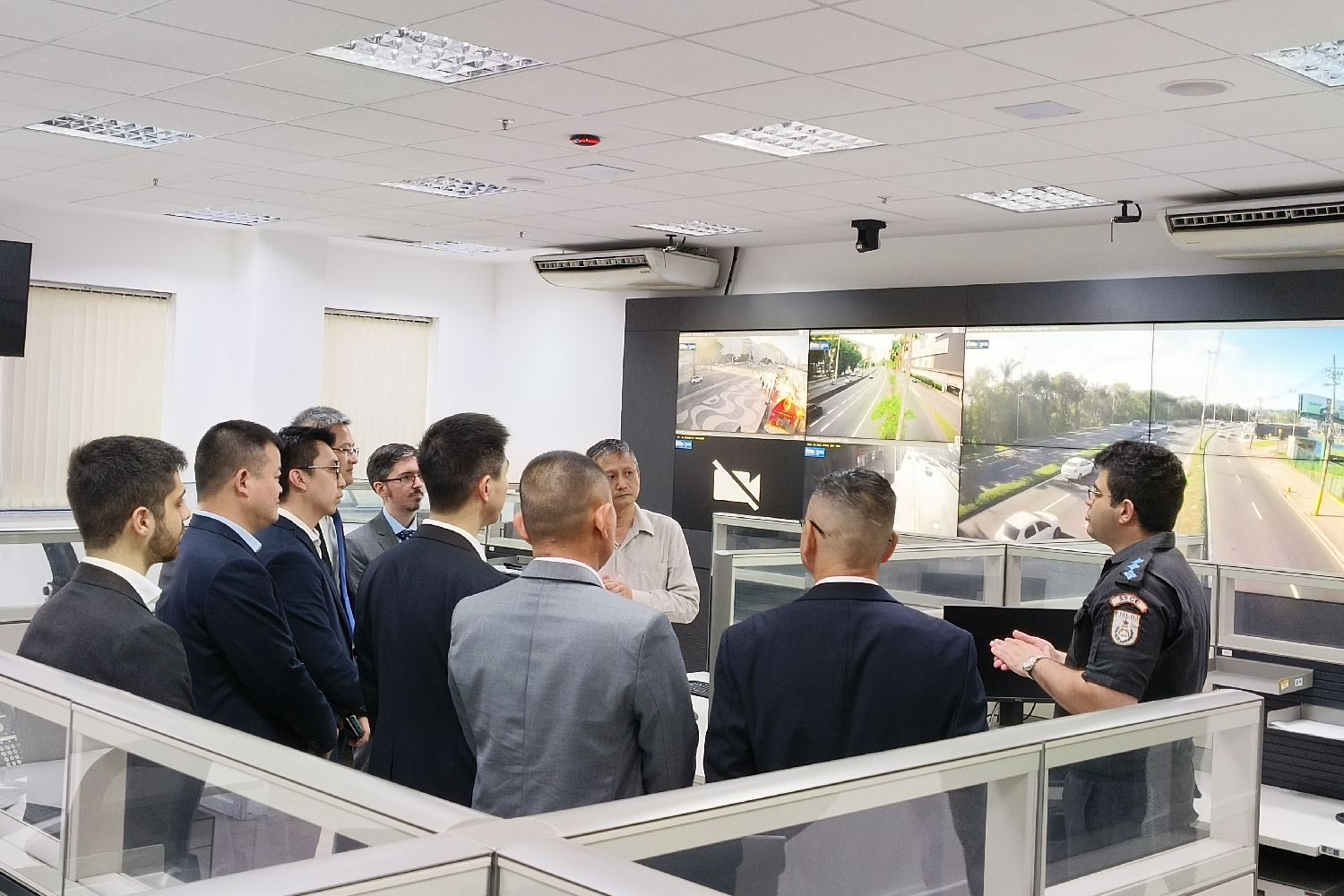 座谈后,费尔南德斯热情介绍并带领考察团现场参观了综合指挥中心。