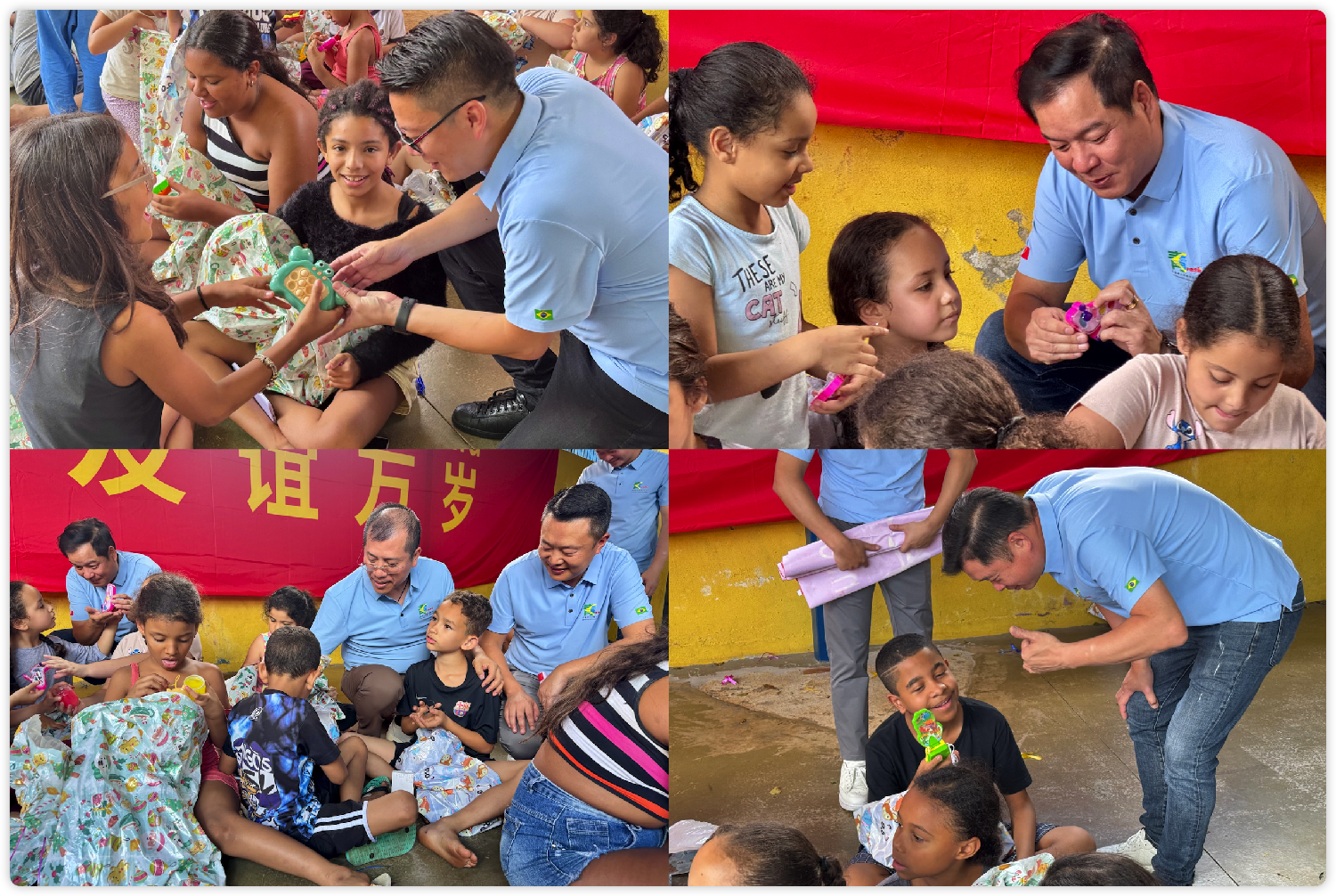 【南美侨报记者戴萌圣保罗报道】12月6日,圣诞节前夕,巴西华人华侨青年联合会走进圣塞西莉亚儿童、青少年中心(CCA Santa Cecília)学校,向该校的贫困学生及社区儿童捐赠了1400多个玩具,作为他们的圣诞礼物。这份充满爱心的馈赠不仅为孩子们带来了节日的欢乐与温暖,更传递了中巴两国之间的深厚情谊。