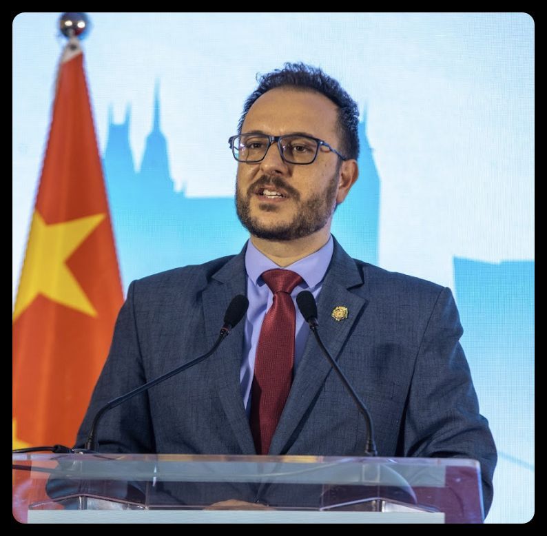 苏马雷市市长路易斯·达尔本在讲话中简要介绍了苏马雷市的基本情况。他表示,尽管中国和巴西相隔万里,但两国人民的友谊深厚,巴西有许多地方可以向中国学习。今年是中巴建交50周年,期待国家领导人若能以长远眼光开启下一个“黄金五十年”,为中巴关系注入更多活力。他还特别提到,巴西总统卢拉是一位具有远见的领导人。同样,苏马雷市也是一个有远见的城市,目前正在积极推进扫盲、基建等项目,拥有巨大的发展潜力。他说,苏马雷市希望充分利用自身的优势,成为中巴合作的桥梁与纽带,推动两国在文化、教育和经贸领域的双向交流。