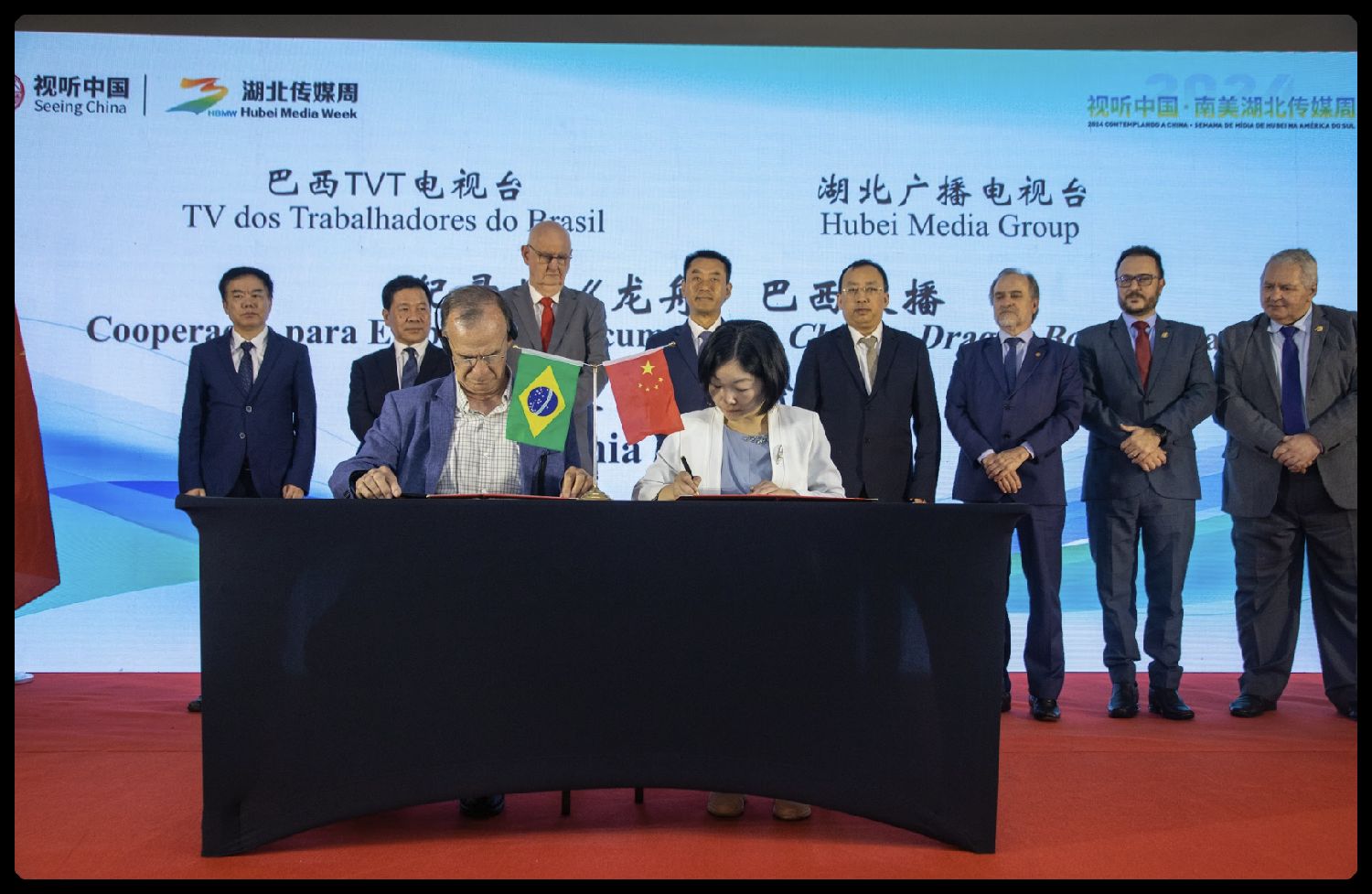 现场达成了中国电视剧《我的阿勒泰》、湖北纪录片《龙舟》在巴西TVT电视台的展播合作协议,借助影视作品向巴西观众展示中国的自然风光与人文风情。湖北武汉出版集团还向圣保罗州立大学孔子学院捐赠了中华优秀文化书籍128册,进一步推动了中文教育和文化交流。