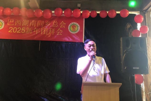 会长綦湘柏在致辞中回顾了2024年同乡会的重要工作。他表示,过去一年,同乡会通过积极参与和开展文化活动、商贸交流和公益服务,不仅加强了乡亲们之间的联系,也为巴西华人社区的发展贡献了力量。他特别提到,在全体会员的共同努力下,同乡会的影响力与凝聚力持续增强,成为湖南乡亲的“家外之家”。