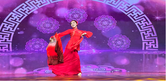 当晚的节目可谓精彩纷呈,群舞《泉映腰肢》展现了生活在中国云南的傣族儿女在大自然环境的衬托下与美景融为一体,在更迭的四季中勤劳生活的和谐景象,抒发了对家乡和大自然的热爱之情。