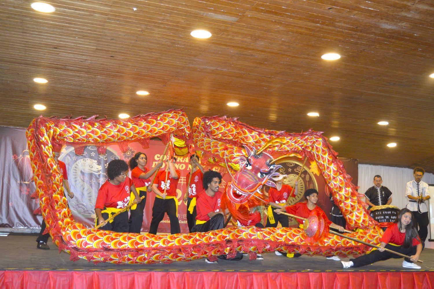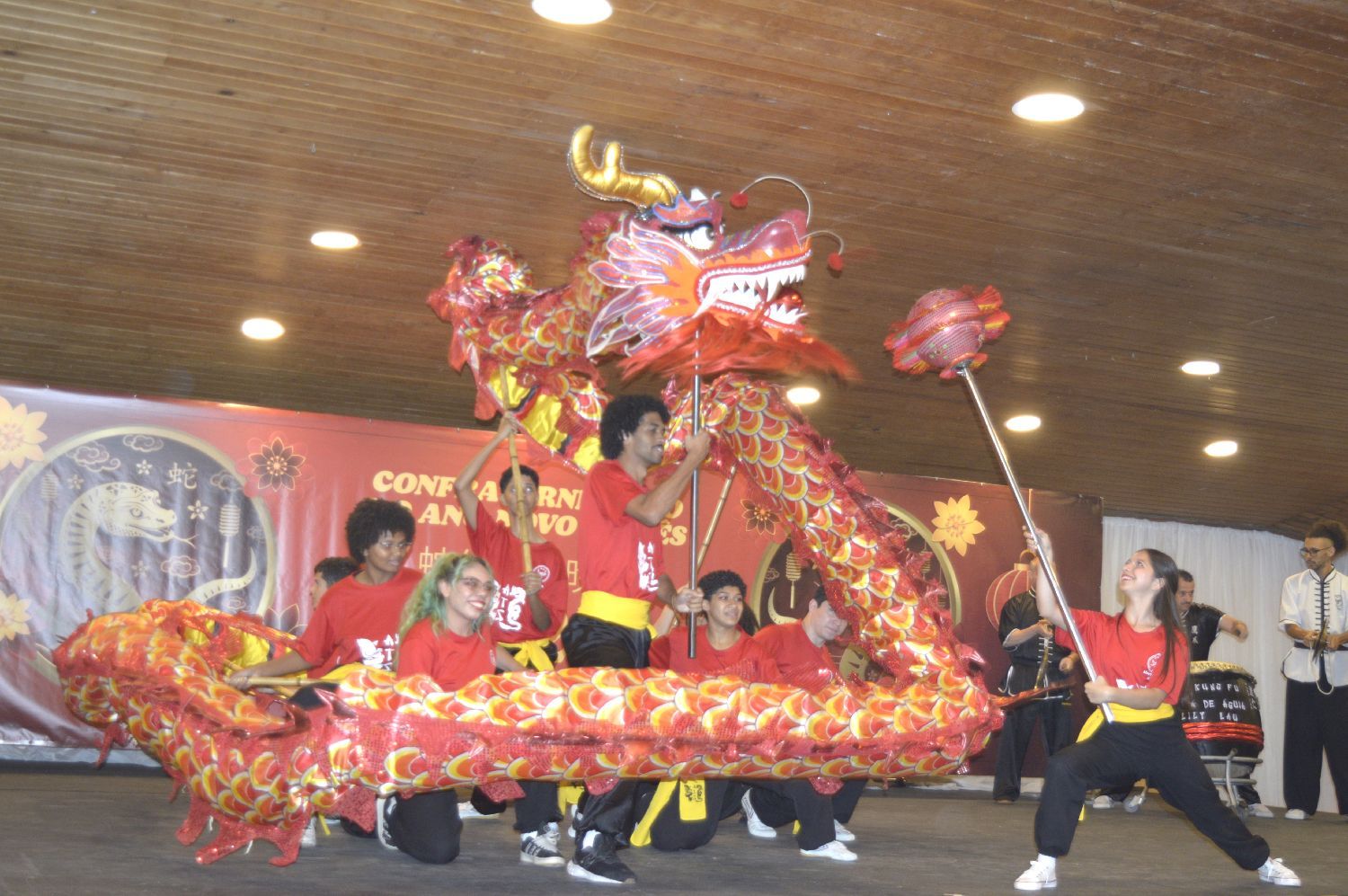 随后,主办方为观众们带来了精彩且丰富多样的表演,展现了中国传统艺术与现代文化的完美融合。文艺表演从由圣保罗龙狮队带来的舞龙舞狮的热闹开场,灵动的龙、威猛的狮子赚足了观众的掌声。