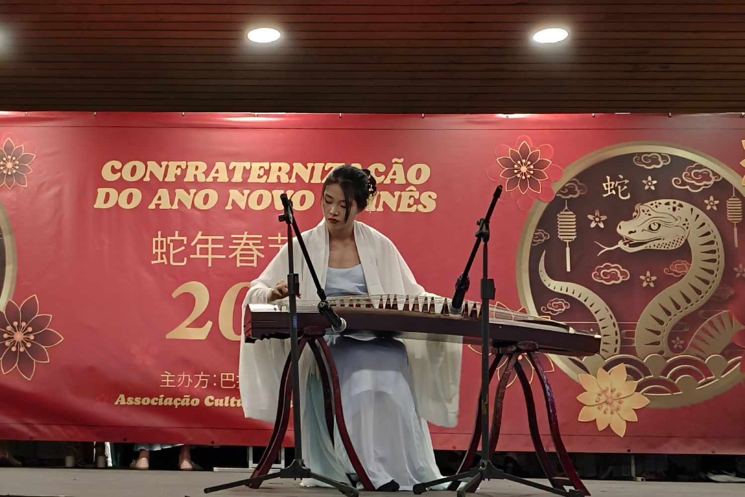 古筝独奏《青花瓷》和《Assim sem você》为观众们带来优雅的旋律。巴西观众们轻轻合唱起来,并表示没有想到中国的乐器和巴西的音乐也能融合地这么优雅动听。
