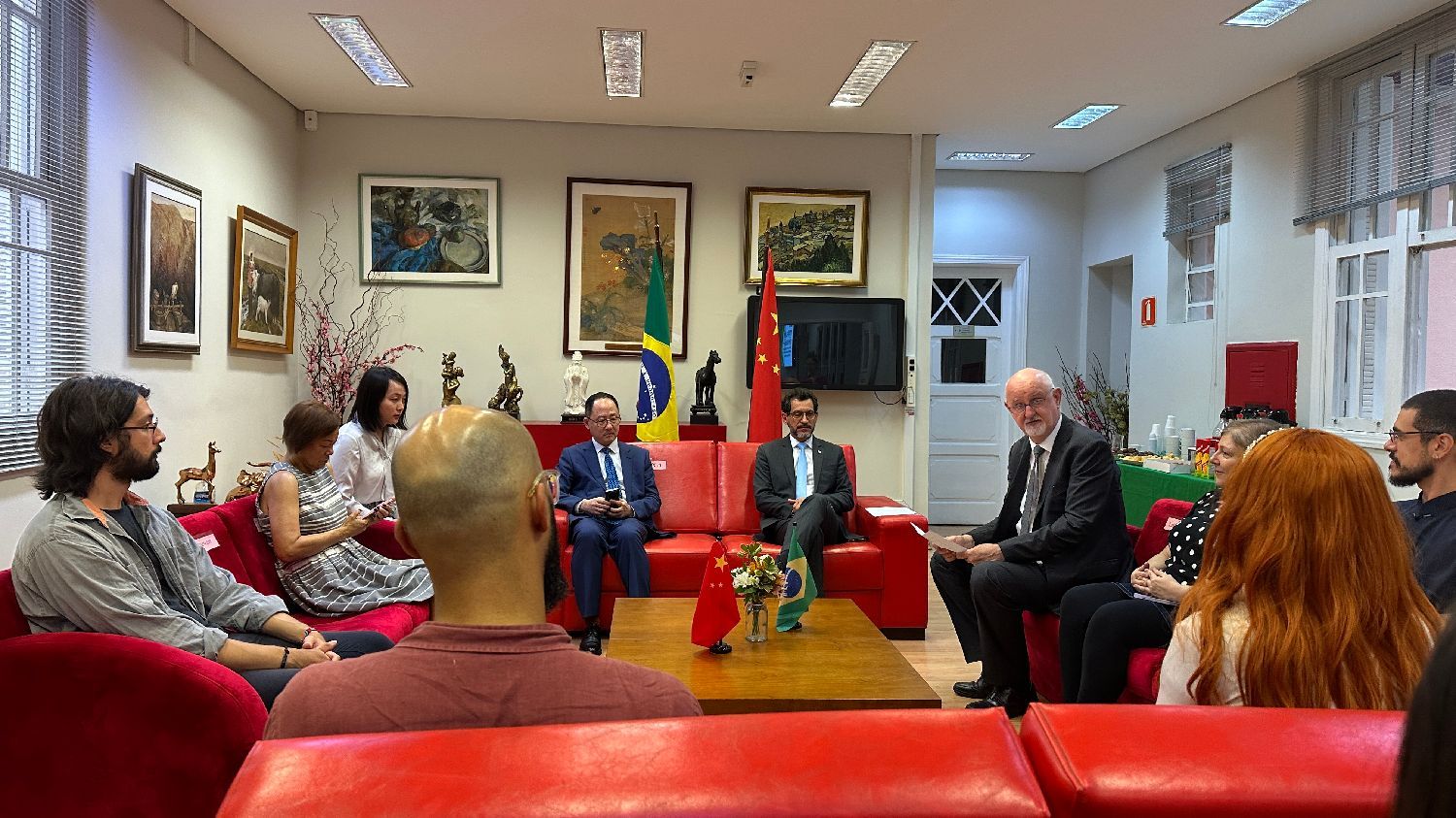 自由交流环节,巴西中国友好协会副会长阿尔布基克、孔子学院学生朱莉安以及“看中国”项目学生代表尼施也分别发言。朱莉安表示,从零基础学中文到如今能与大家交流,离不开孔子学院老师们的耐心指导。通过学习中文,她走进了中国文化的世界,去年参加中国湖北大学暑期项目的经历让她爱上中国,也更加坚定了促进中巴交流的信心。她还提到收到习主席办公室回信时的激动心情,这让她深切感受到中巴两国人民之间的真挚友谊。尼施作为“看中国”项目的学生代表,表达了希望通过拍摄纪录片,向巴西公众展示真实中国的愿望。她认为,尽管中巴相距遥远,但两国既有不同之处,也有许多相同点,希望通过自己的镜头拉近两国人民的距离,她十分感谢中国给予的宝贵经历,这些经历对她的学业和事业都起到了极大的助力。