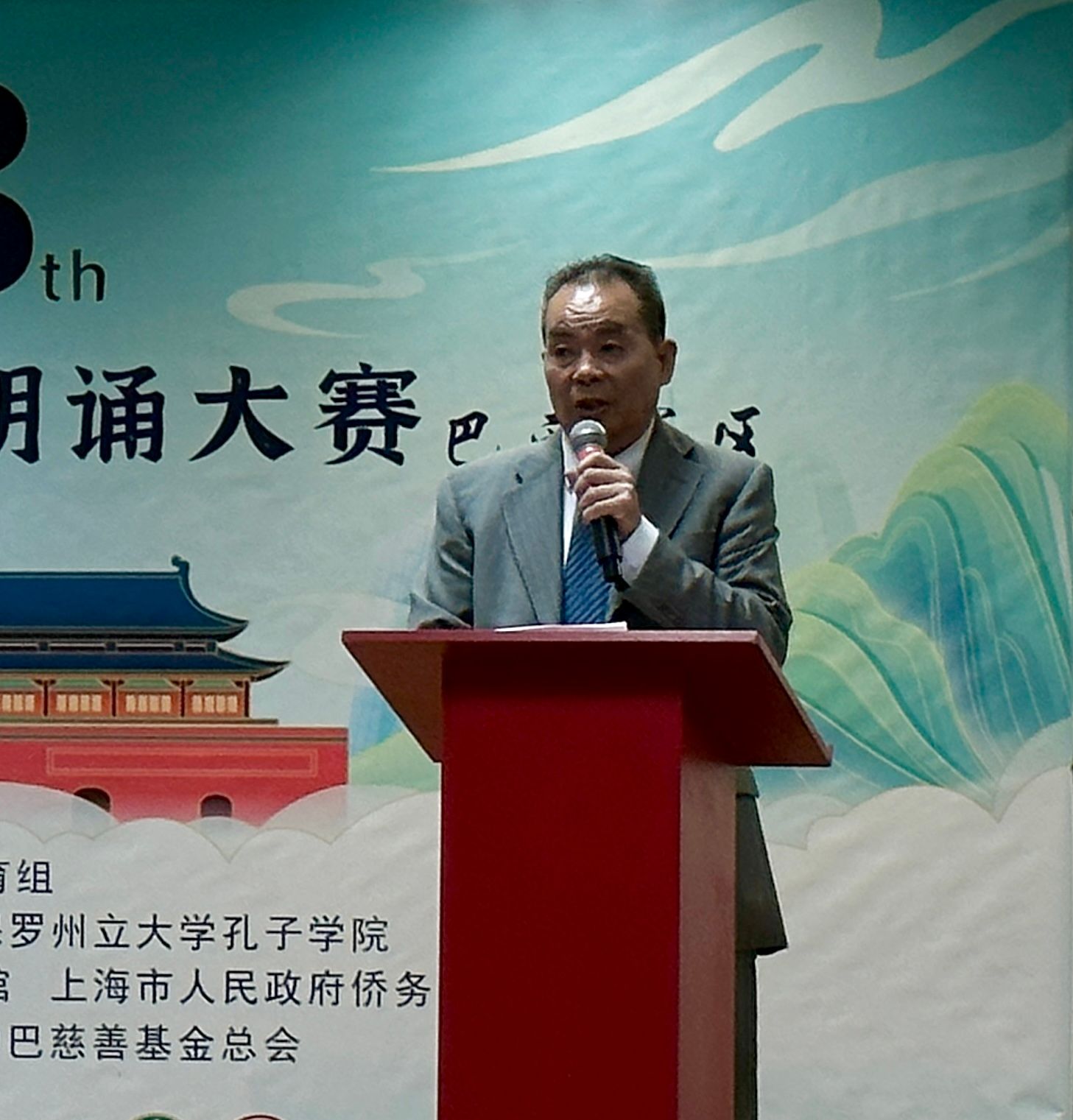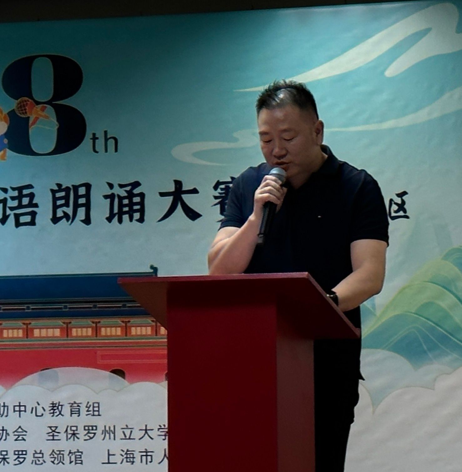 圣保罗华助中心教育组组长胡军在致辞中代表朗诵大赛巴西赛区组委会感谢圣保罗州立大学孔子学院、多家圣保罗侨社、总领馆、上海侨办对赛事活动的大力支持。感谢各位评委老师、义工志愿者的辛勤付出,他特别提到,圣保罗各中文学校的组织参与对活动的成功中起到了关键作用。巴西华人协会监事长在开幕式致辞中表示,大赛不仅为华裔青少年提供了学习、成长和展示才华的舞台,也为圣保罗华文教育的发展注入了活力与动力。支持单位代表闽商联合会监事长吴智情和中巴慈善基金总会会长诸诗琦表示,非常高兴能够参与传扬中华文化的赛事活动,将继续支持活动,进一步推动中巴文化交流。