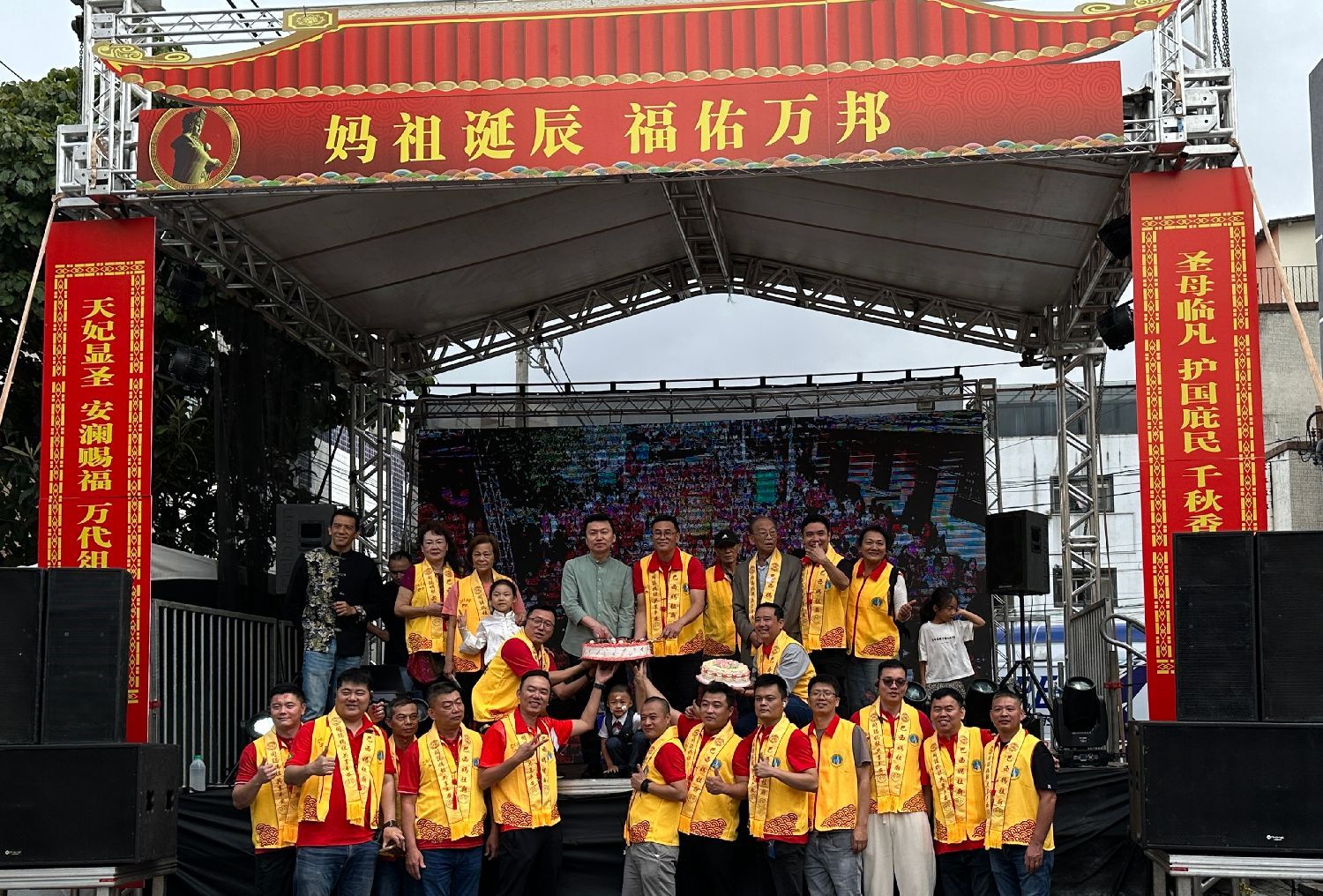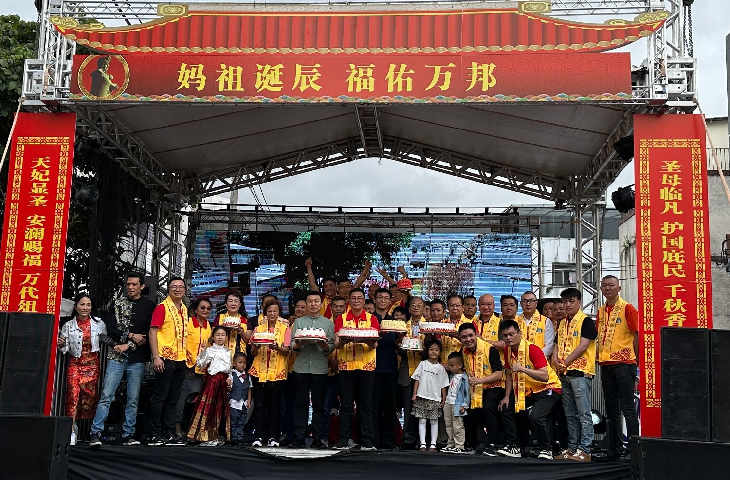 典礼中举行了象征吉祥、喜庆和祈福的切蛋糕仪式,大家齐声祈愿:“妈祖保佑,越来越好!”。