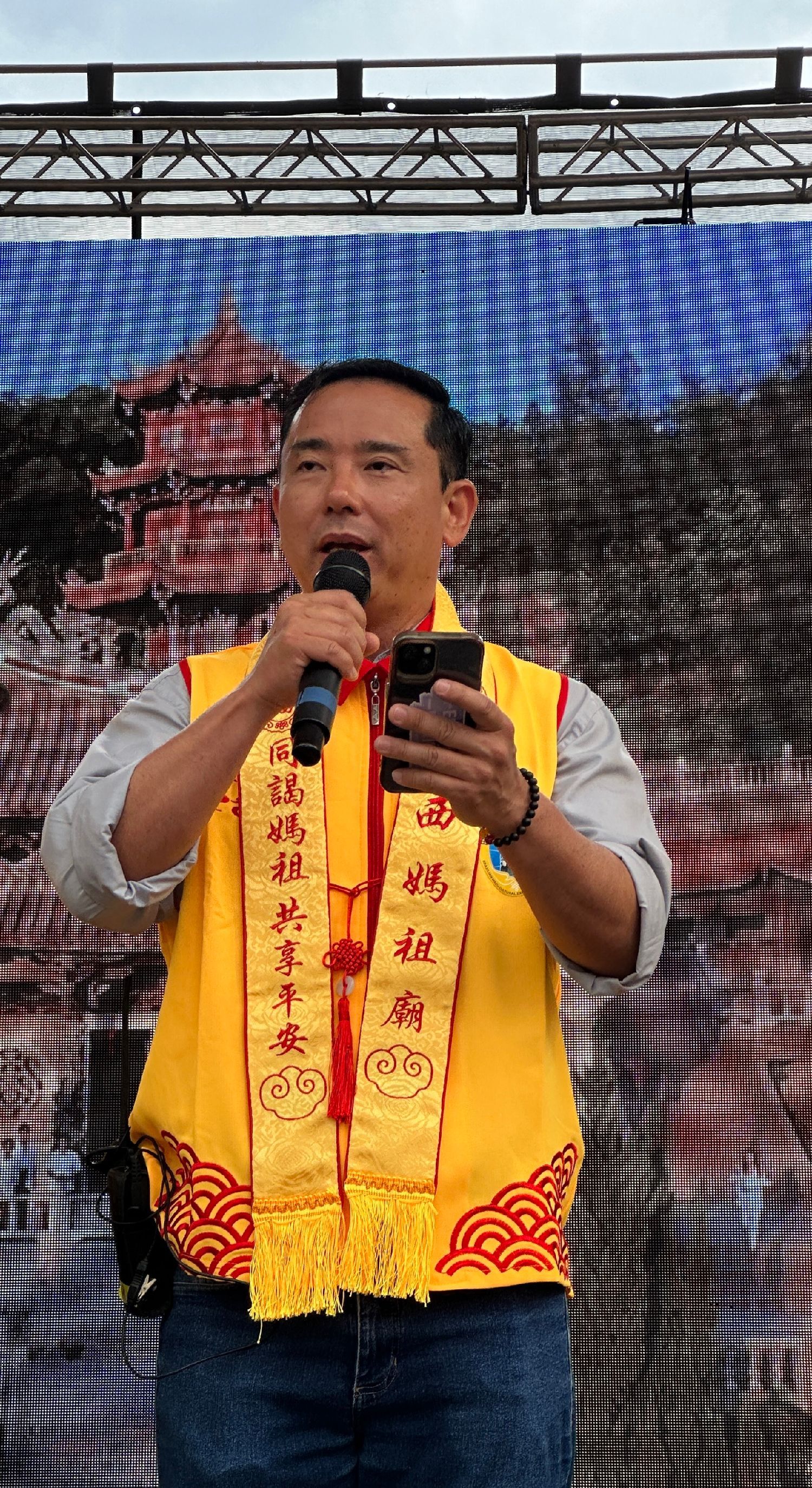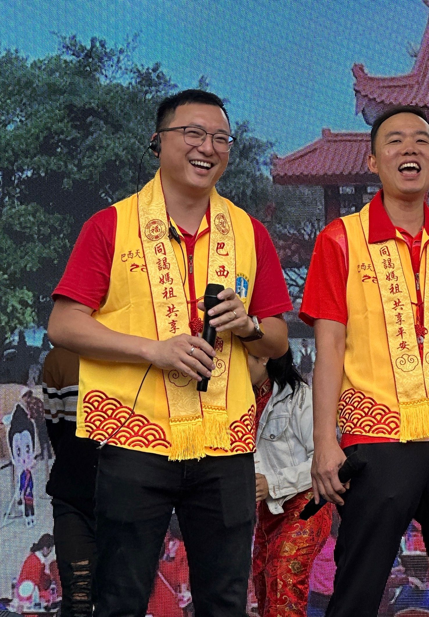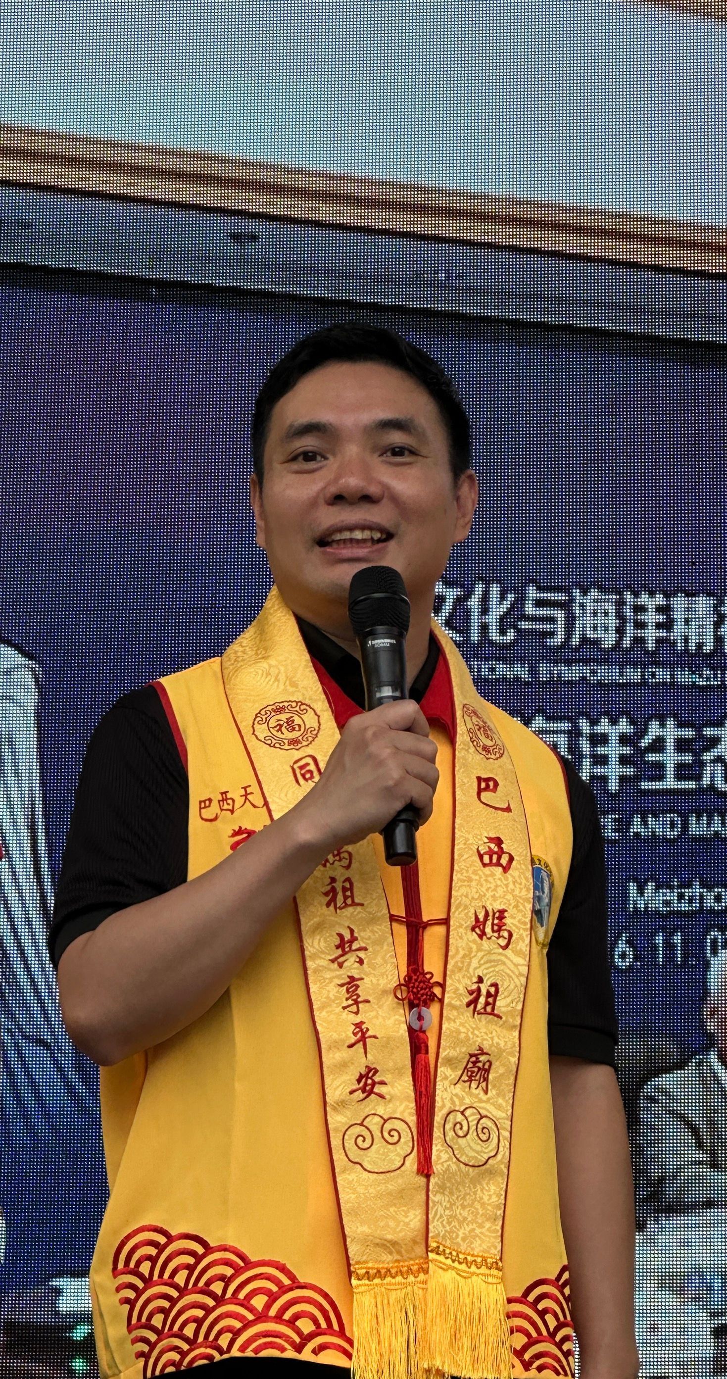 致辞环节由闽南会秘书长陈彬主持。杨志芳会长首先致辞,感谢中国驻圣保罗总领馆及圣保罗市政界、侨界嘉宾的莅临支持。他表示,妈祖东渡来到巴西,成为广大旅巴华人心灵的寄托,让大家在异国他乡也能感受到来自家乡的温暖与力量。越来越多的巴西朋友也被妈祖精神所感动,参与到敬仰妈祖的行列中。闽南会将继续致力于传播和弘扬妈祖文化,通过举办各种文化活动,推动中巴文化交流,增强文化认同。