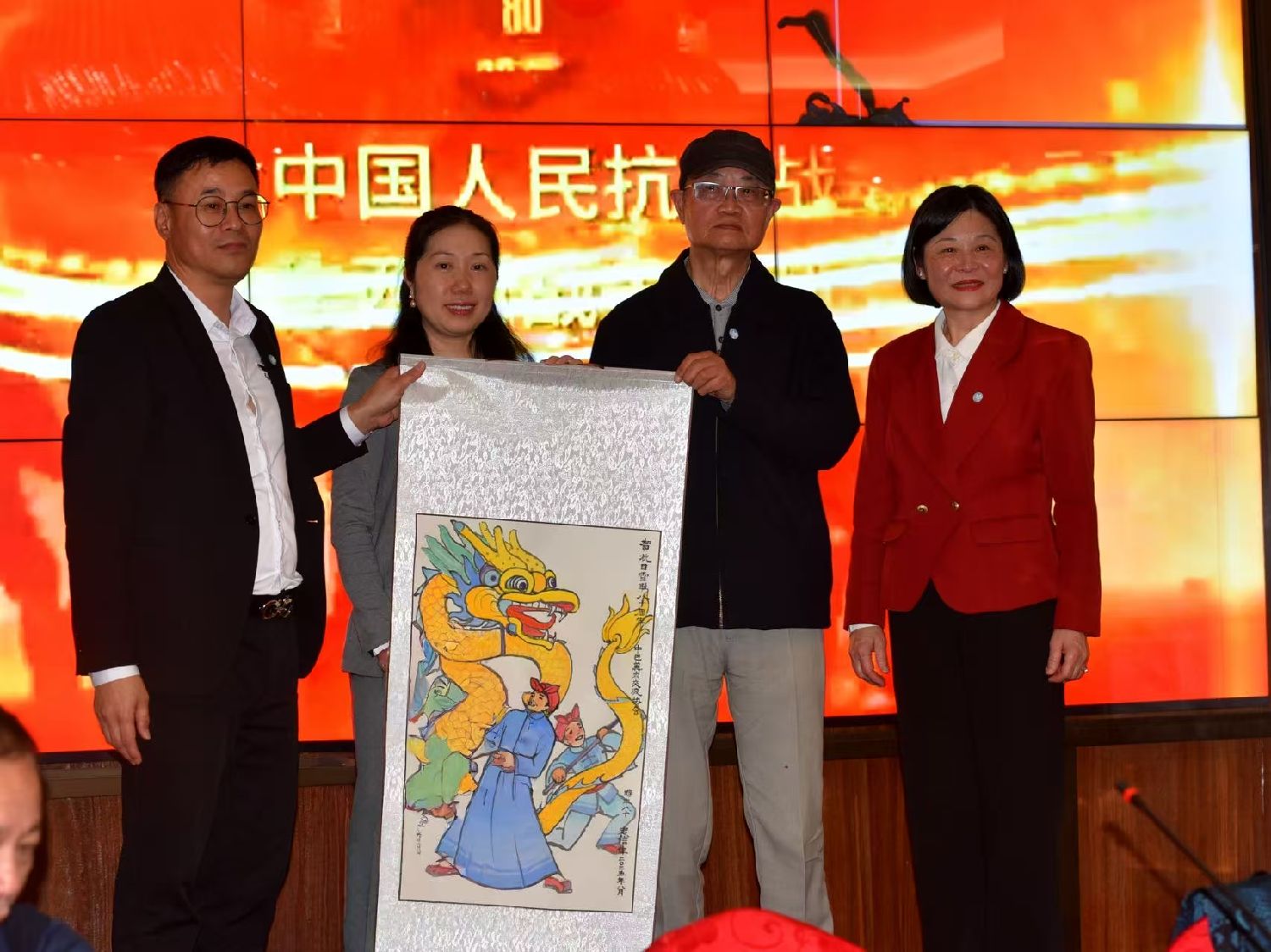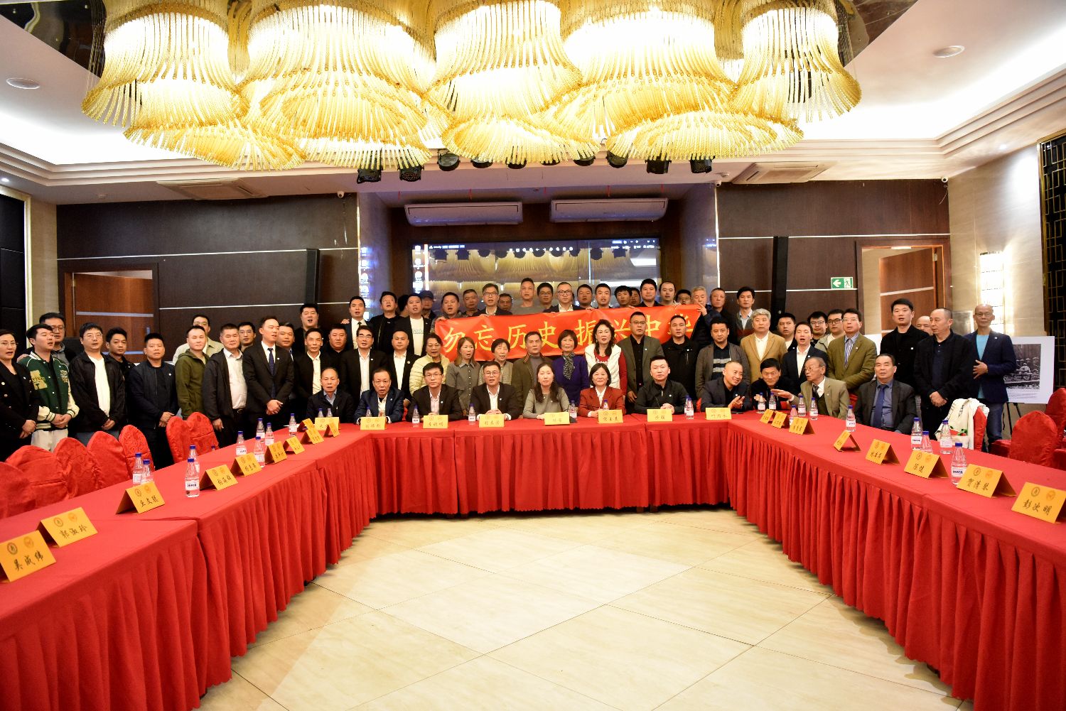 座谈会最后,80岁的旅巴书画家李忠信老师向大会赠送了精心创作的画作。全体与会人员齐唱中华人民共和国国歌,并在"勿忘历史,振兴中华"的横幅前合影留念。