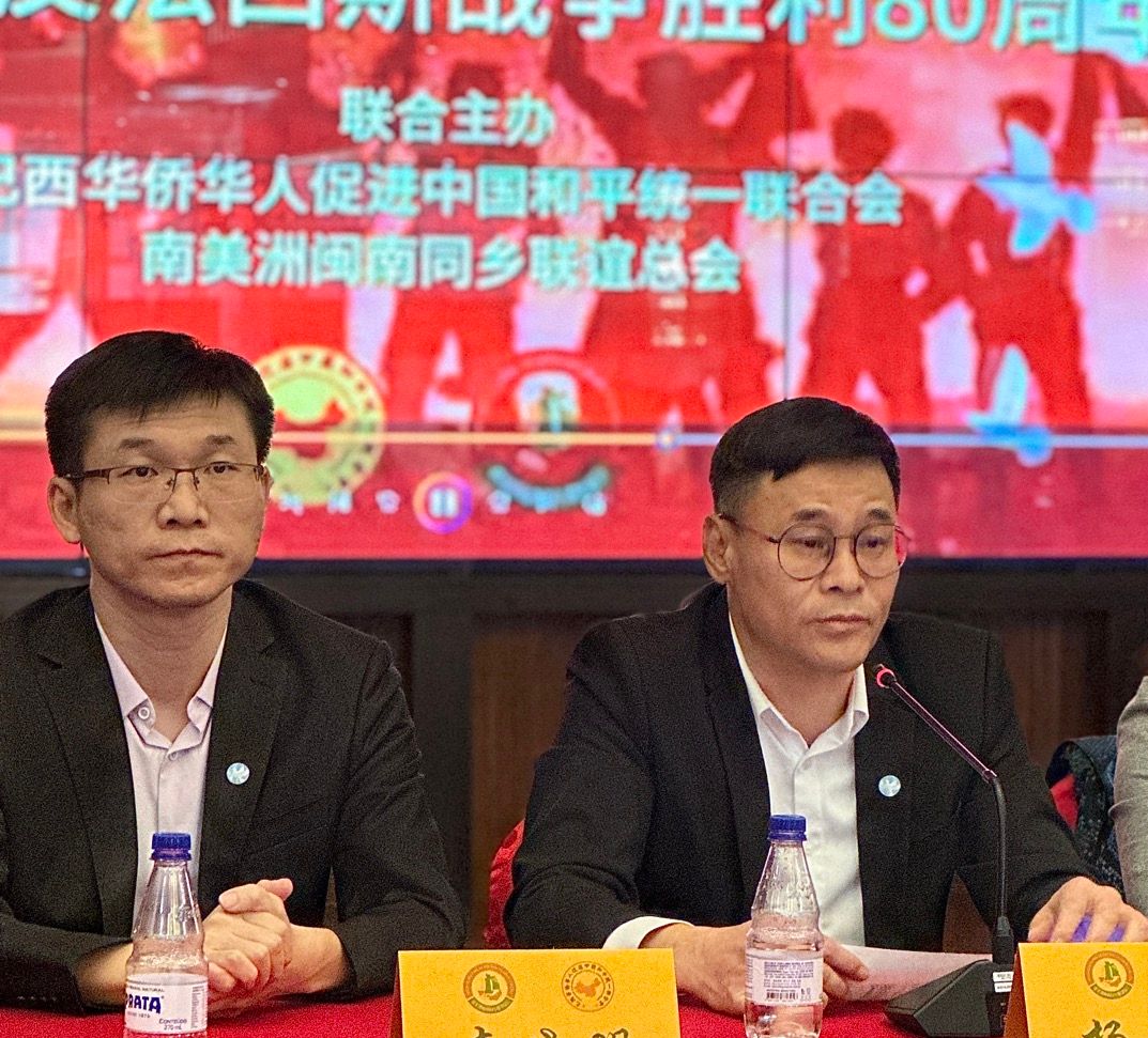 【南美侨报特约记者庄沂圣保罗报道】8月14日,巴西华侨华人促进中国和平统一联合会携手南美洲闽南同乡联谊会,在圣保罗联合举办“铭记历史共筑和平促进统一”主题座谈会,隆重纪念中国人民抗日战争暨世界反法西斯战争胜利80周年。中国驻圣保罗总领馆副总领事张希、领侨处主任荣强、侨务领事李晓明,以及巴西华人协会会长叶周永、巴西华人协会永久荣誉会长吴耀宙、朱苏忠、南美州闽南同乡联谊总会永久荣誉会长刘振魁及圣保罗侨社代表、主办侨团理监事成员一百多人出席活动。