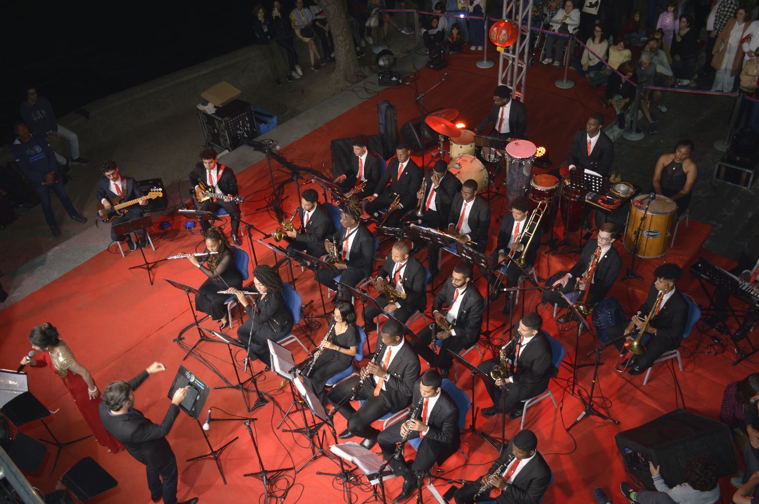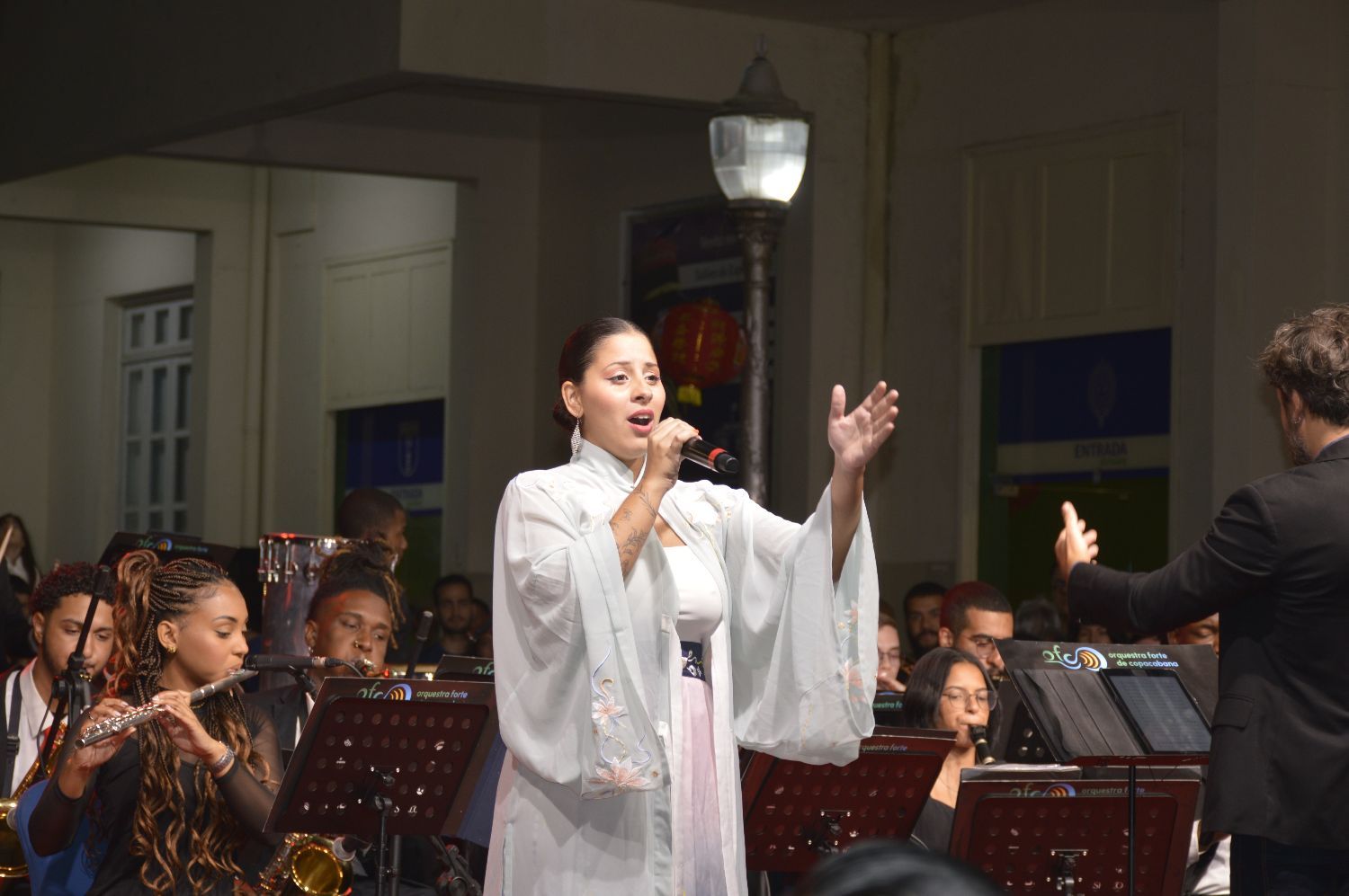 活动现场节目丰富多彩,气氛热烈,赢得观众一阵又一阵热烈的掌声与欢呼。舞龙、舞狮与功夫表演,不仅展现了中华传统文化的力量与魅力,也将节日般的喜庆氛围带到舞台与观众之间;特邀歌手于茜深情演唱的《我的祖国》,用动人的歌声把中国的情怀与声音传递到里约海岸,引发全场共鸣。作为东道主的科帕卡巴纳要塞交响乐团则演奏了多首中巴经典曲目,旋律中融合了两国音乐的精髓与情感,中西交融、余音绕梁,让观众在音乐中感受文化对话的魅力。更令人惊喜的是,乐团的歌手们以流利的普通话演唱中文歌曲,彰显了音乐作为友谊桥梁的独特力量。