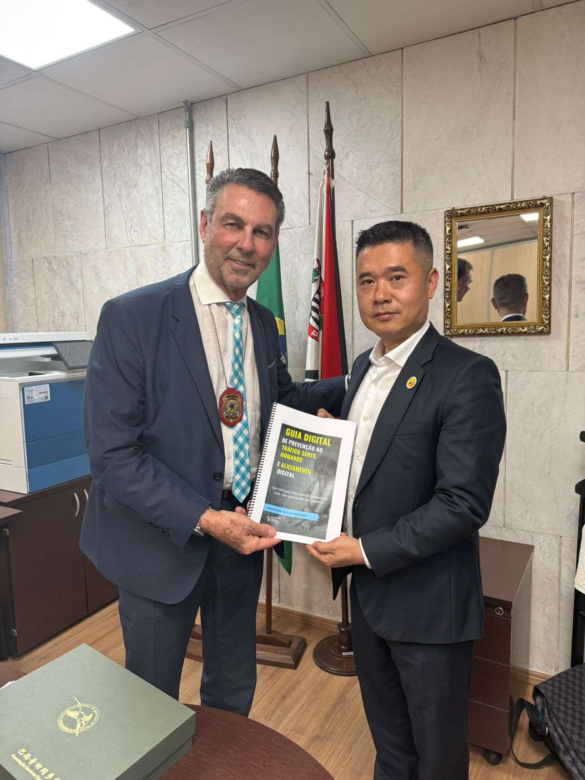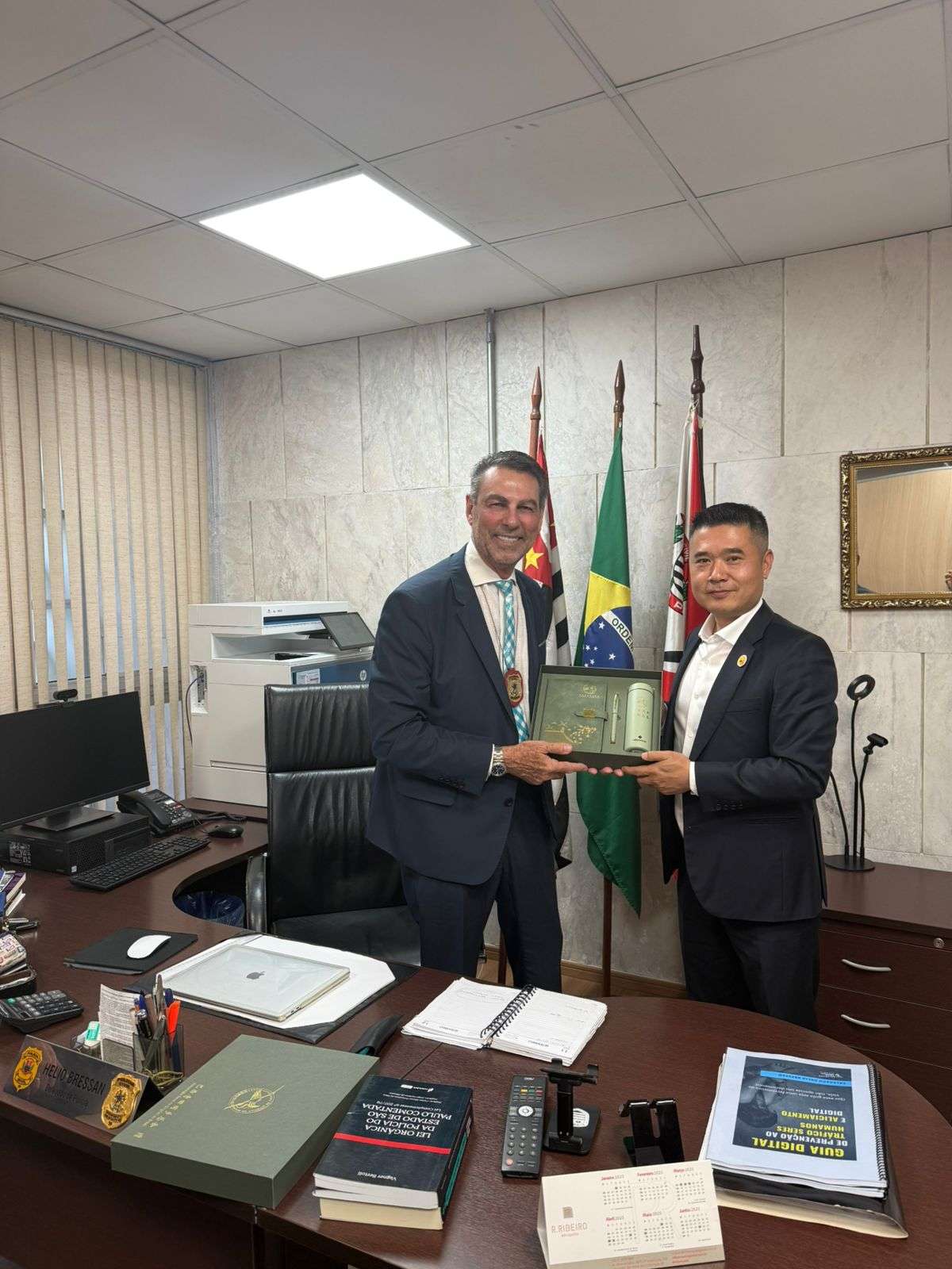 【南美侨报网讯】2025年9月10日,巴西青田同乡总会会长张海群率监事长杜伟武,秘书长杨建伟,第一常务副会长叶绍平,副会长董伟平,拜访圣保罗州议会民事警察局。局长HELIO BRESSAN热情接待到访的青田同乡总会代表并举行座谈。
