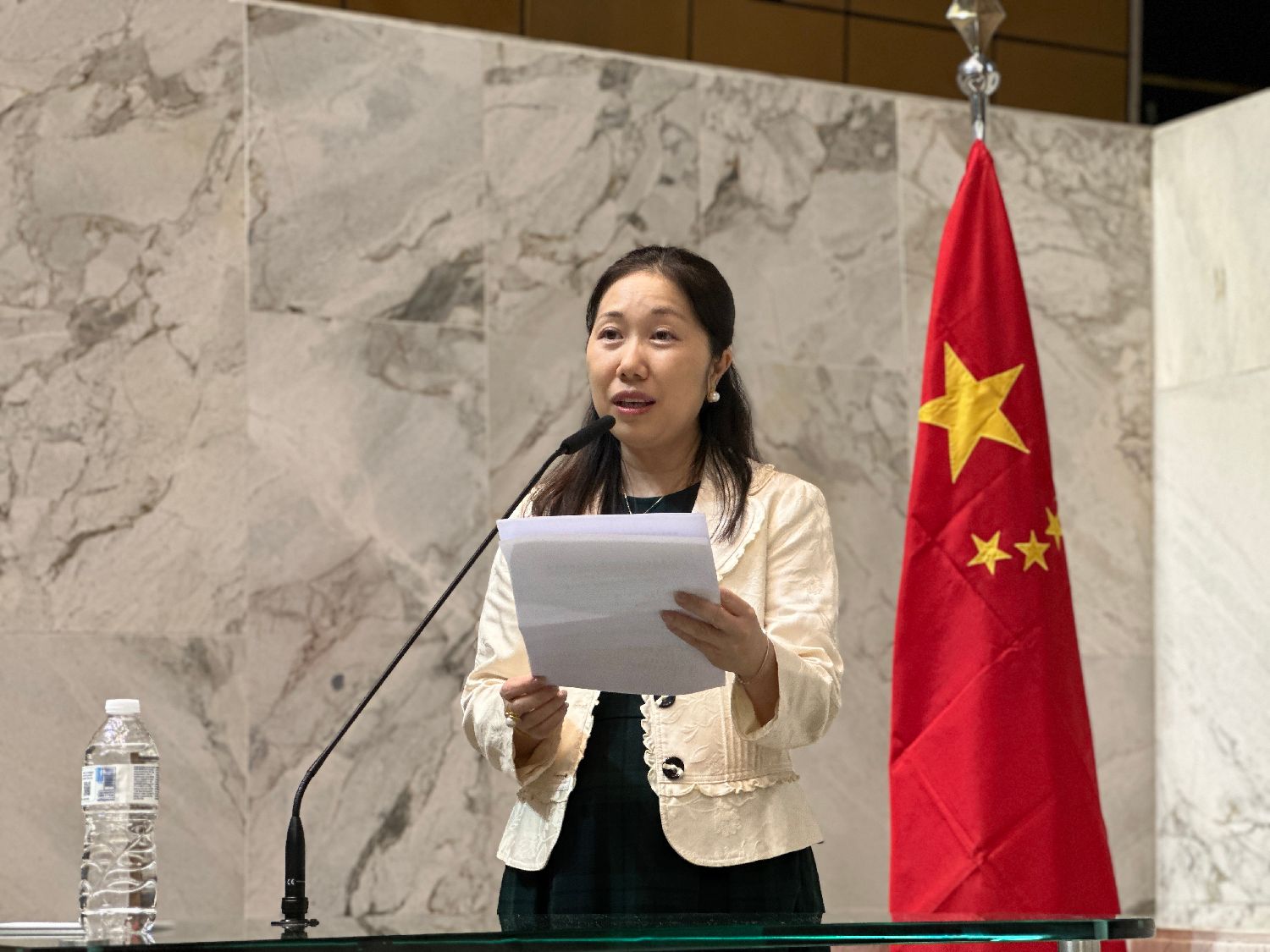 总领馆双边处副主任庄苏从历史、法理和事实三方面阐述了一个中国原则,他援引《开罗宣言》《波茨坦公告》及联合国大会第2758号决议,明确指出台湾是中国不可分割的一部分,并获得183个国家承认的国际共识。他强调:“台湾回归中国,是二战胜利成果和战后国际秩序的重要组成部分。”