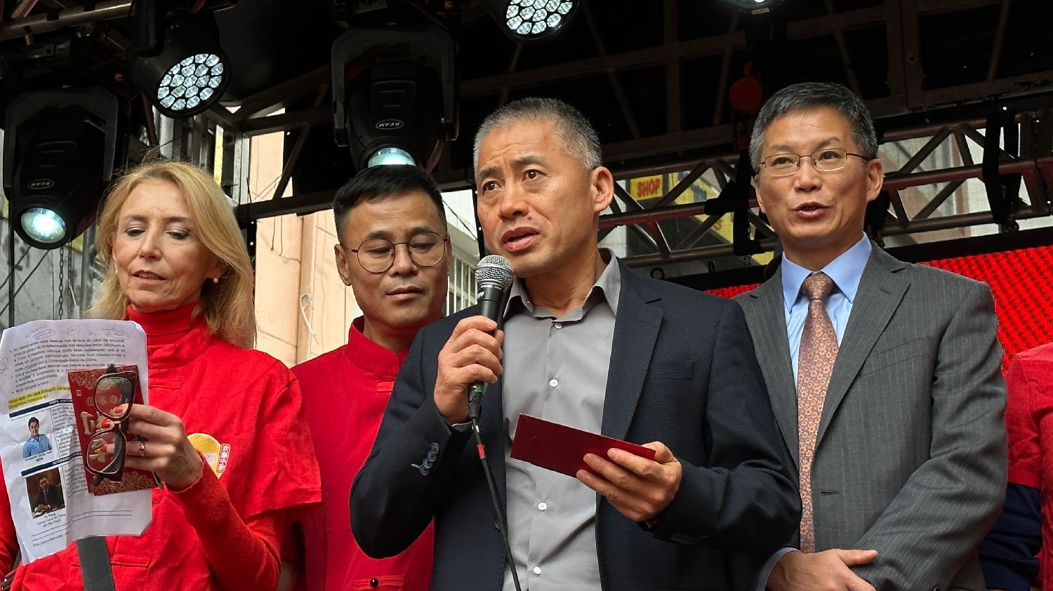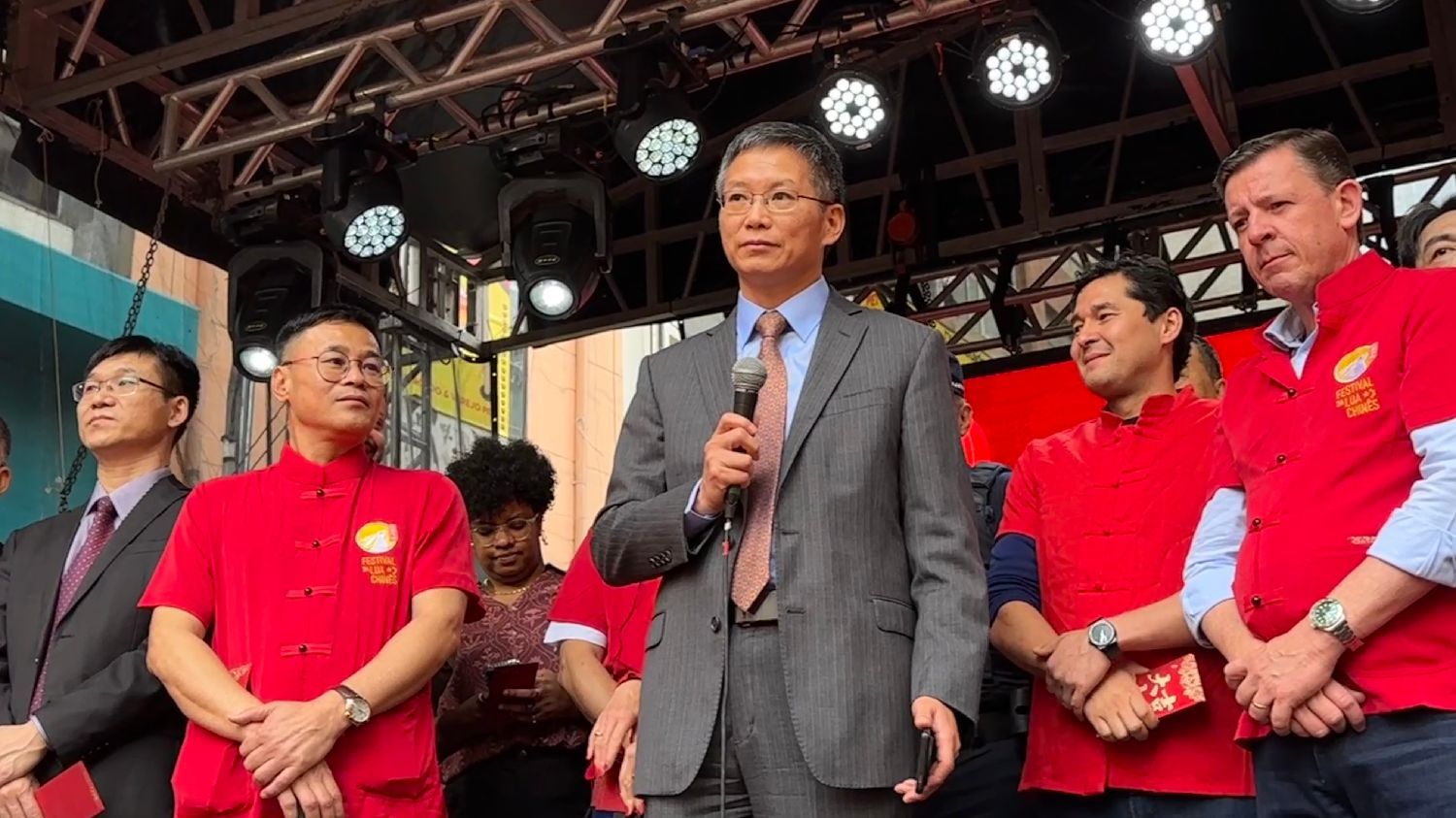 圣保罗市议员乔治·哈托在发言中代表市议会向华人社区致以节日祝福,并深情回忆了去年访问浙江金华的经历,赞扬中国地方城市的文化魅力与现代发展。