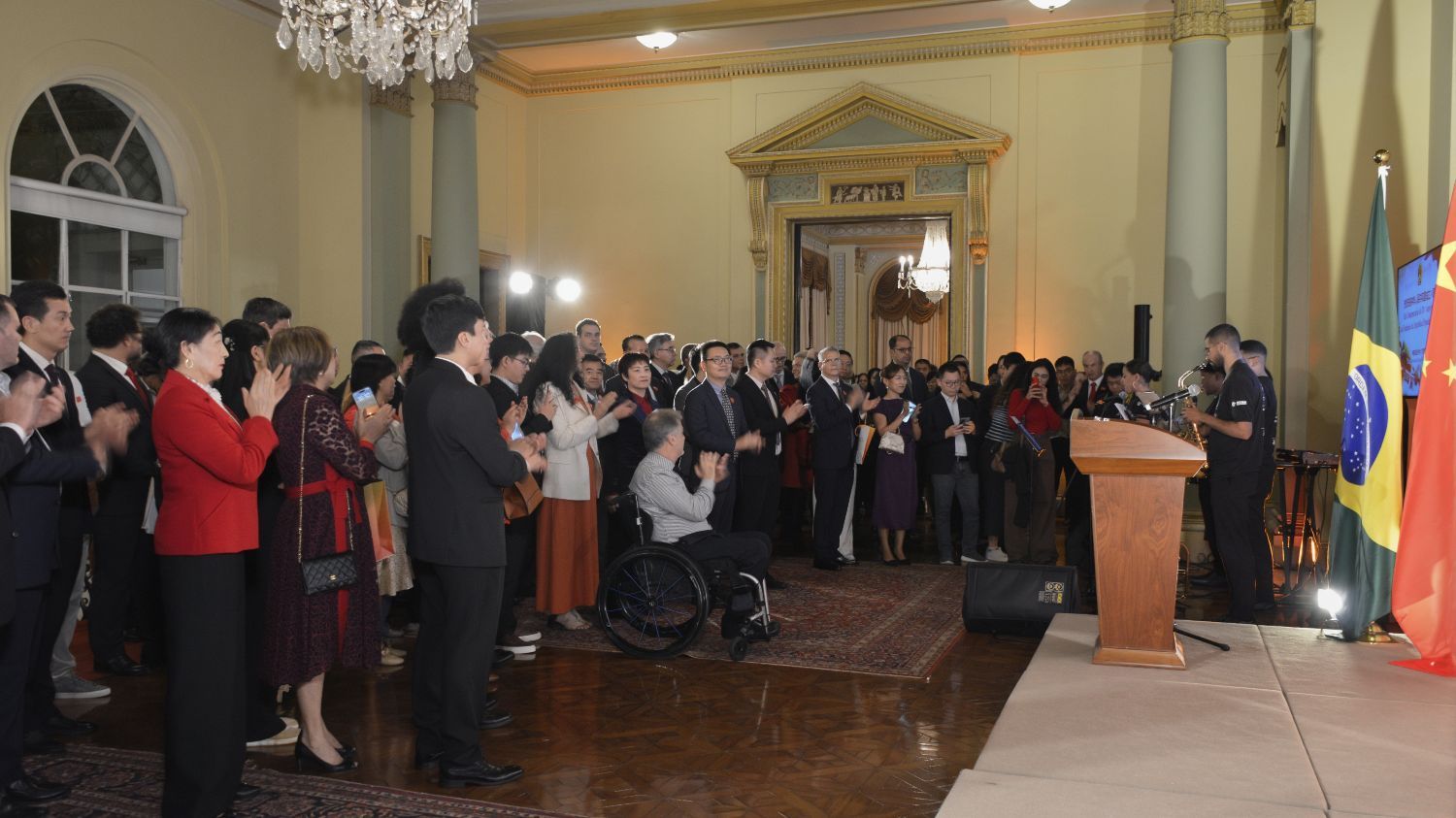 在文化表演环节,科帕卡巴纳要塞乐团演奏并演唱了两首脍炙人口的中文歌曲,悠扬的旋律赢得观众阵阵喝彩;里约天主教大学孔子学院的中文教师带来了优美的琵琶独奏,展现了东方艺术的独特魅力;最后,国网巴控公司代表深情献唱《我爱你,中国》,将全场气氛推向高潮。