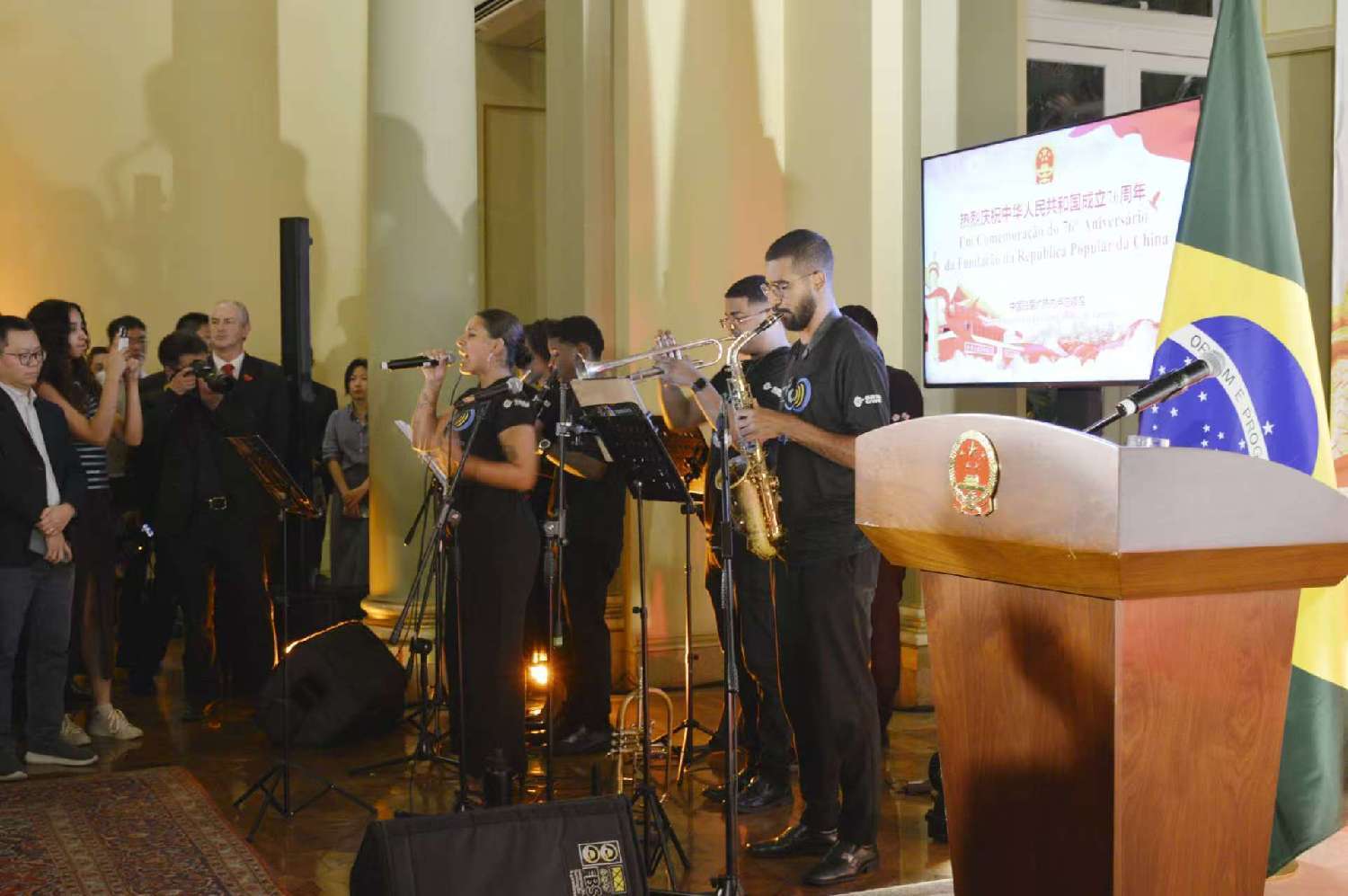 活动伊始,由中海油巴西公司赞助、巴西山河文化促进中心管理的科帕卡巴纳要塞乐团演奏并演唱了巴西国歌,随后由中国美声歌唱家演唱中国国歌,现场气氛庄严而热烈。