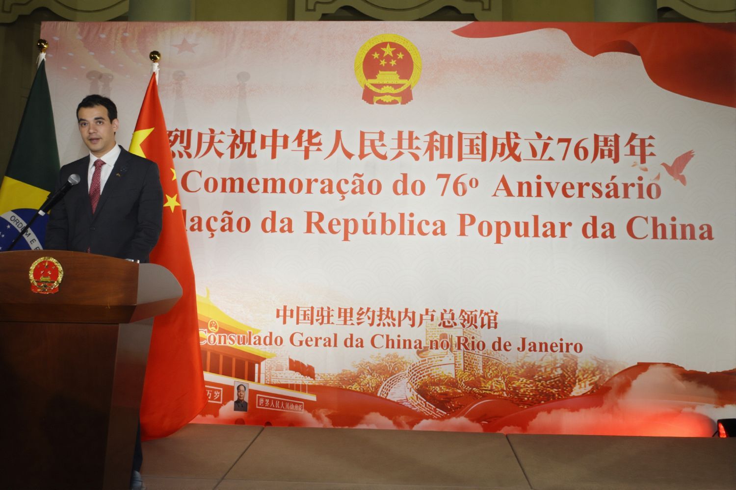 库珀斯坦首先祝贺中华人民共和国成立76周年。他表示,中国驻里约总领馆多年来积极推动对华友好合作事业,谱写了双边关系发展的新篇章。近年来,里约与中国携手构建了模范性合作关系,在文化、教育、科技、旅游、经贸、城市治理和历史遗产保护等领域成果丰硕,持续推动民心相通,拓宽合作空间,深化两国人民之间的友谊。